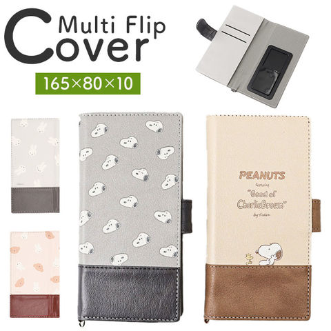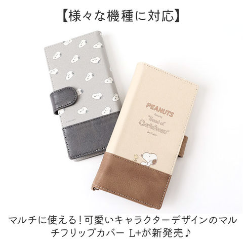 キャラクター マルチフリップカバー L【ピーナッツ/グレー】
