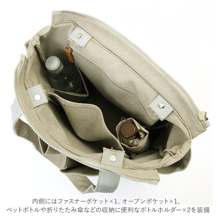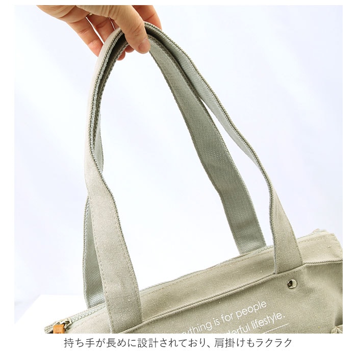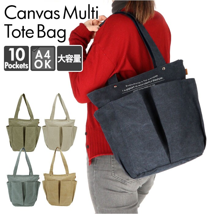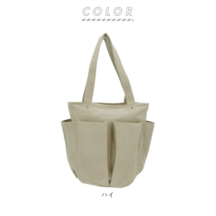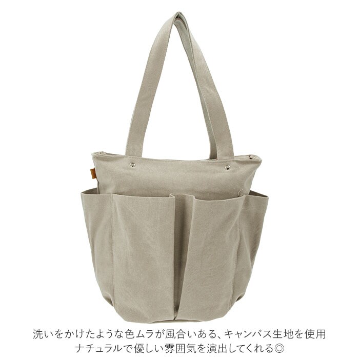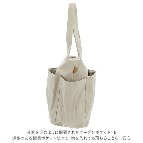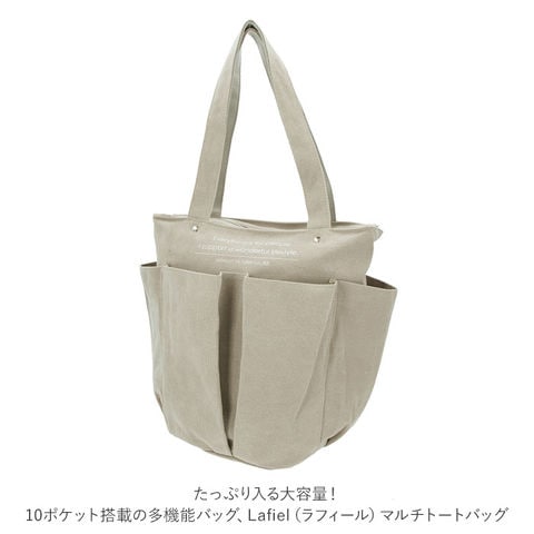 | 商品説明 | たっぷり入る大容量!10ポケット搭載の多機能バッグ、Lafiel(ラフィール)マルチトートバッグが発売。洗いをかけたような色ムラが風合いある、キャンバス生地を使用。ナチュラルで優しい雰囲気を演出してくれる◎A4サイズのファイルが縦向きにすっぽりと収まるサイズ感。お出かけに必要な荷物がひとまとめ♪メインルーム開口部はファスナー式。中身が見える心配がなく、プライバシーをしっかり確保。内側にはファスナーポケット×1、オープンポケット×1、ペットボトルや折りたたみ傘などの収納に便利なボトルホルダー×2を装備。小物の整理整頓がしやすい仕様!さらに外側を囲むように配置されたオープンポケット×6。深さのある縦長ポケットなので、スマホやハンカチ、ガムなどのお菓子を入れても落ちることなく安心。持ち手が長めに設計されており、肩掛けもラクラク。カジュアルなオシャレ感のあるカラーバリエーション。通勤通学はもちろん、お出かけや1泊程度の旅行、マザーズバッグとしても活躍! |