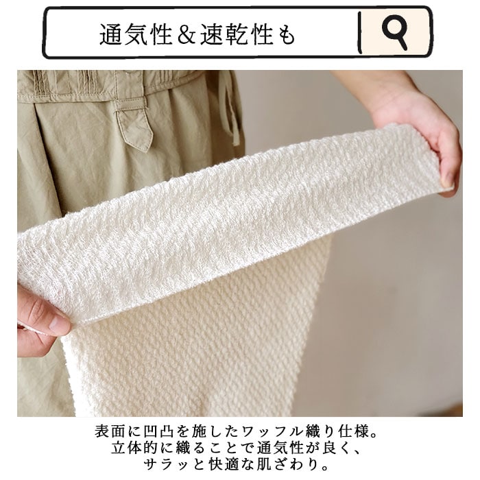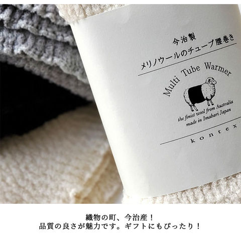 | 商品説明 | 織物の町、今治産!多機能なメリノウール素材を使った腰巻き「マルチチューブウォーマー」が新登場。【すっぽり覆える、長いボディウォーマー】お腹から腰まわりまで、広範囲を包み込む長さがポイント!折り返せば暖かさが2倍☆【1度使ったらやみつきに♪】横にぐ~んと伸びるので、妊娠中のお腹も優しくサポート。月経時などお腹を冷やしたくない時や、冷房対策にも重宝するアイテム。【保湿性・吸湿性・防臭性バツグン】メリノ種という羊毛”メリノウール”素材を採用。年間を通して厳しい環境から羊の体を守っているウールは保湿性・吸湿性・防臭性に優れ、発散性も高くベタつかない!【ウールを使いやすく加工】多機能素材メリノウールを防縮加工し、ウール特有のチクチクとした肌ざわりや毛玉の発生を抑制。【お手入れカンタン】防縮ウールは洗濯ネットに入れて、洗濯機洗いOK。気軽に洗えていつも清潔◎(※タンブラー乾燥はお避けください。)【通気性&速乾性も】表面に凹凸を施したワッフル織り仕様。立体的に織ることで通気性が良く、サラッと快適な肌ざわり。【使い方いろいろ】首元を温めるネックウォーマーやスヌード、ひざ掛け代わりにも!着脱ラクチンなクッションカバーとしても使える優れモノ☆ |