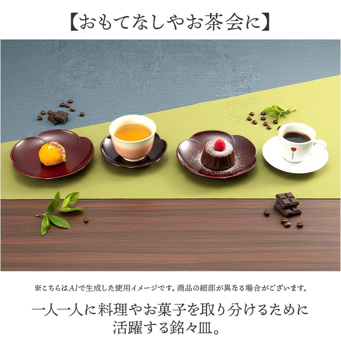 | 商品説明 | 【食卓を華やかに彩る】山中漆器の伝統美が、おもてなしを格上げ「5.0梅型銘々皿 5枚セット」が新登場。【上品な和皿】石川県加賀市の山中温泉地区で生産される伝統の山中漆器。日本製ならではの品質と美しさ。【おもてなしやお茶会に】一人一人に料理やお菓子を取り分けるために活躍する銘々皿。【お菓子が映える】可愛らしい梅の花をかたどった形状で、和菓子も洋菓子も美しく盛り付けられる。【便利な5枚セット】人数に応じて使えるから急な来客時に重宝するアイテム◎【扱いやすい】軽くて割れにくい素材を使用し、日常使いにも安心な設計。 |