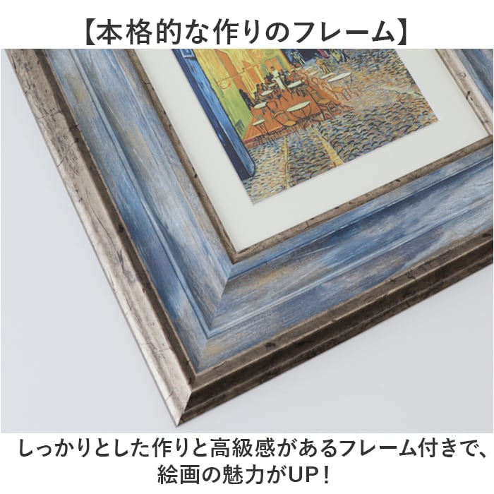 商品説明【有名な絵画をピックアップ】お部屋に気軽に絵画を飾れるアートフレームが登場。【日々に彩と癒しを】癒される絵画がアートフレームに。お部屋に飾ってインテリアに彩もプラス。【本格的な作りのフレーム】しっかりとした作りと高級感があるフレーム付きで、絵画の魅力がUP!【届いてからすぐ飾れる】フレームの吊り金具に、付属の紐を結びつけて壁掛け。気軽に飾れるのが嬉しい。