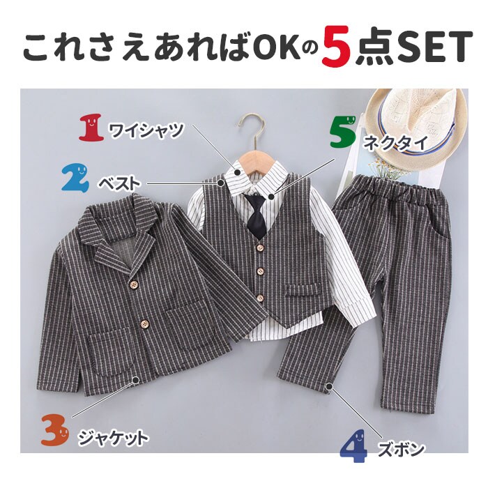 | 商品名 | フォーマルスーツ 男の子 5点セット mw604 |
