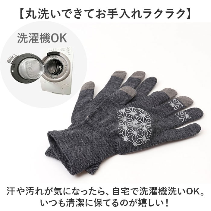 | 注意点 | 【手袋を外す手間なくスマホ操作】特殊機能繊維を使い、スマホやタッチパネルに対応。屋外でもそのまま使用できて便利。(※2)指が乾燥していたりすると、スマホタッチが出来ない場合がございます。【丸洗いできてお手入れラクラク】汗や汚れが気になったら、自宅で洗濯機洗いOK。いつも清潔に保てるのが嬉しい!洗濯機 可 乾燥機 不可長時間日光にあたったり、摩擦、水漏れなどによる色落ちや色移りすることがあります。お取り扱いの際は、商品やパッケージなどに記載されている品質表示、アテンションタグ、ご使用上の注意事項などを必ずご確認下さい。本来の目的以外にはご使用にならないで下さい。カメラやモニターの性質により、画像と実物の色の違いがある場合がございますのでご理解願います。 |