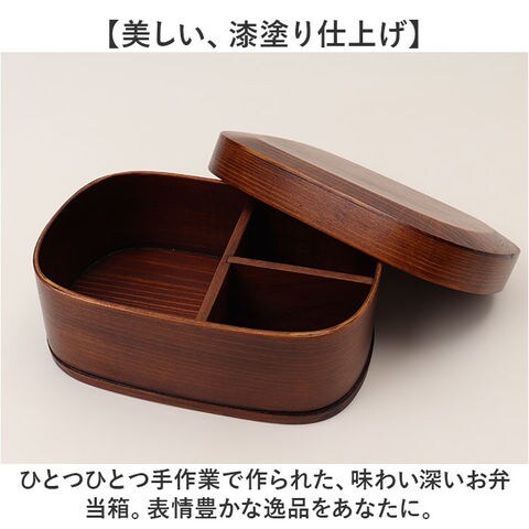 | 商品説明 | 【天然木ならではの風合い♪】毎日のランチタイムをもっと贅沢に!「曲げわっぱ弁当箱(大)」が登場。【美しい、漆塗り仕上げ】ひとつひとつ手作業で作られた、味わい深いお弁当箱。表情豊かな逸品をあなたに。【天然木の爽やかな香り】自然由来の優しい香りに癒される。ランチタイムをより贅沢に、ホッと一息つける時間を提供。【男性にもオススメのBIGサイズ】たっぷり食べたい方にオススメの大きめサイズ。他ページにて、小さめサイズを販売中。【ふっくらおいしいごはんに♪】天然木が持つ調湿効果で、ごはんの水分を調節。冷めてもふっくらおいしい状態に。【使いやすいポイントがたくさん】おかずを仕分けるプレートとゴムバンドつき。軽量設計だから持ち運びもラクラク。【映えるお弁当箱】ごはんを敷き詰めて、おかずを無造作に乗せるだけでおしゃれに映えるお弁当が完成☆※取り扱い説明書にて、使用上の注意等をご確認ください。 |