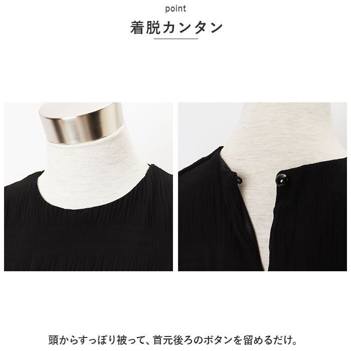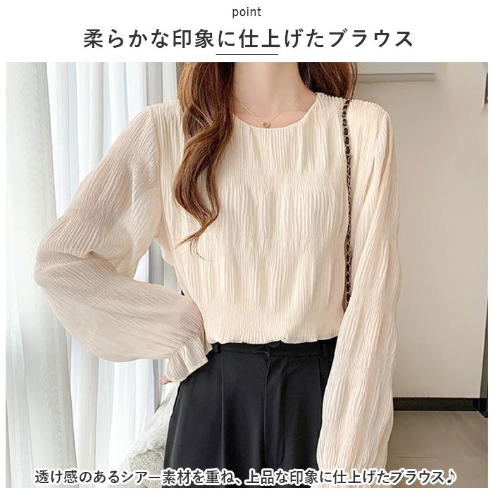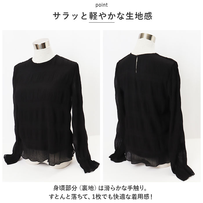 | 商品説明 | フェミニンな雰囲気を演出してくれる♪大人可愛いブラウスが登場。【柔らかな印象に仕上げたブラウス】透け感のあるシアー素材を重ね、上品な印象に仕上げたブラウス ♪【サラッと軽やかな生地感】身頃部分(裏地)は滑らかな手触り。すとんと落ちて、1枚でも快適な着用感!【ふんわり感をプラス】袖部分はふわっと丸みのあるフォルムで、気になる腕まわりもおしゃれにカバー。袖口にピタッと留まるゴムが入った長袖タイプ。【着脱カンタン】頭からすっぽり被って、首元後ろのボタンを留めるだけ。【オン・オフ問わず活躍】シンプルなワンカラーデザイン。休日のお出かけにはもちろん、通勤コーデにもおすすめ。 |