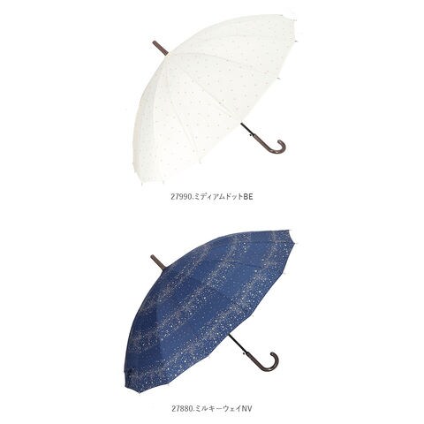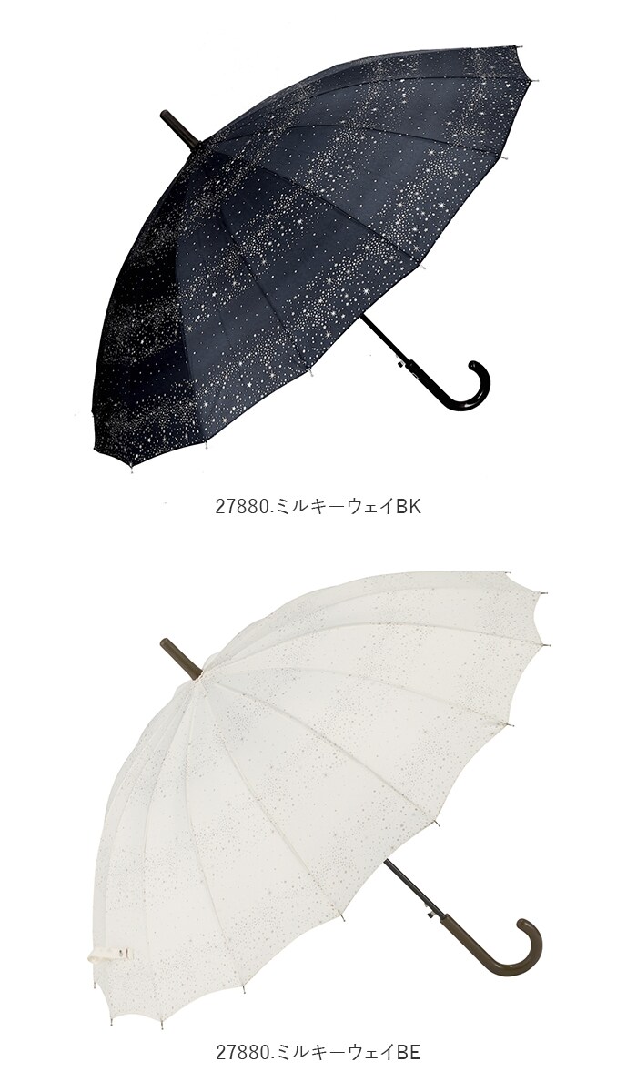 amusant sous la pluie 55cm 16本骨 長傘 UVプロテクション【27880.ミルキーウェイNV】