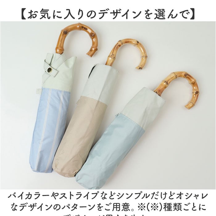 | 商品説明 | 【日差しも雨もこれ1つで対応】オシャレなデザインが嬉しい☆晴雨兼用の折り畳み傘が発売。(親骨約50cm)【晴れの日の紫外線カットに】黒コーティングを施し、紫外線を99%以上カット!UPF50+効果で日焼け防止に◎【日差しをカットできる遮光効果】日差しも99%以上カットできるので熱射病対策にもオススメ♪真夏の強い日差しからも守る!【雨の日も活躍】はっ水機能もあり晴れの日はもちろん、急な雨にも対応可能。【風が強い日も安心】グラスファイバーの親骨を使用し、強い風を受けてもしなやかに曲がり壊れにくい。【スムーズかつ安全に開閉】開閉時に指先や爪を挟むのを防止するネイルカバー付きで、簡単に開閉できる手開きタイプ。【お気に入りのデザインを選んで】バイカラーやストライプなどシンプルだけどオシャレなデザインのパターンをご用意。※(※)種類ごとにデザインが異なります。【ナチュラルな竹素材の手元】自然な風合いをプラス♪節の凹凸が手に馴染んで持ちやすいバンブー素材のハンドル。【サッとまとめられる】留めバンドは傘生地をまとめやすい面ファスナーテープ式。【収納袋付き】収納や保管に便利な傘生地と同色の収納袋付き。スナップボタンを外して出し入れスムーズ。 |