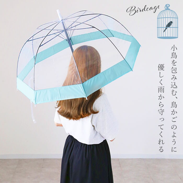 amusant sous la pluie バードケージ プラスチック傘 65cm【切り継ぎWH】