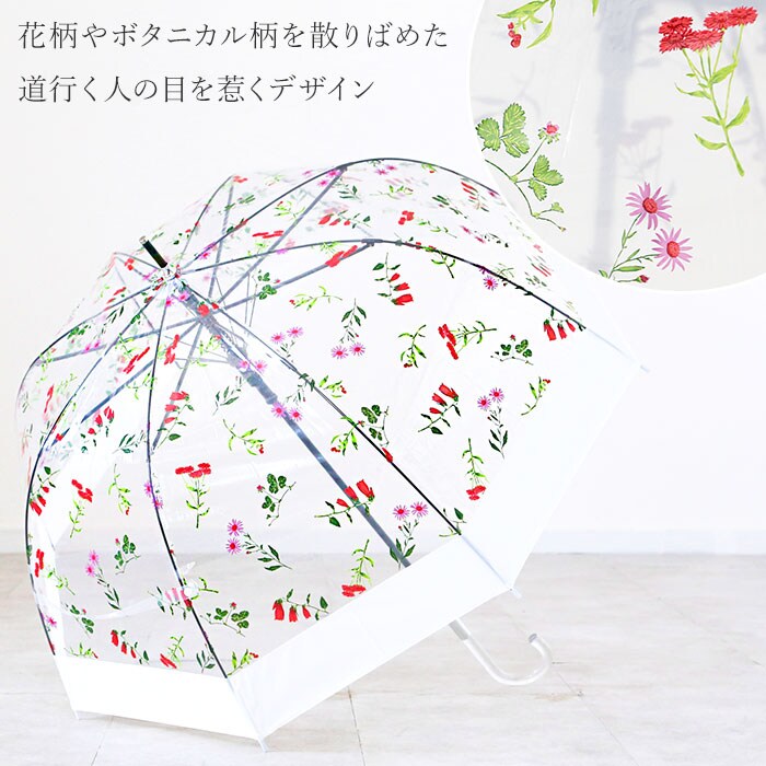 | 商品説明 | 小鳥を包み込む鳥かごのように、優しく雨から守ってくれる・・・。amusant sous la pluie(アミュゾン・スー・ラ・プルイ)から、バードケージ・プラスティックアンブレラが新登場。(親骨65cmタイプ)通常の長傘よりも傘生地を深く張り、ふんわりと丸みのあるドーム型に仕上げた個性的なフォルムが特徴。ポリエチレン製の透明な生地に、ヴィヴィッドな花柄やボタニカル柄を散りばめた道行く人の目を惹くアーティスティックなデザインが魅力。(※切り継ぎWH・切り継ぎSKYの2色は、クリアタイプの傘生地になります。)少し大きめに傘生地が広がる親骨65cmタイプなので、洋服や荷物が雨に濡れにくく、しっかりとさせるのが嬉しいポイント!親骨には、軽量で強い風の日もしなやかにさせるグラスファイバー素材を採用。スリムに折りたためて、持ち運びも楽ちん。片手に荷物がある時や、突然の雨でもワンタッチで傘生地がサッと広げられるジャンプ式。つゆ先近くを縁取る淡いカラーと透明なアクリルハンドルが、洗練された大人の女性の装いに素敵にマッチ。 |