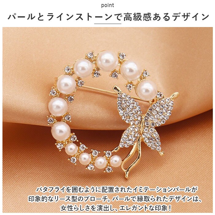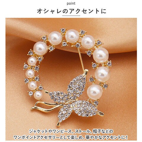 | 商品説明 | きらめくバタフライのパールブローチが登場!【パールとラインストーンで高級感あるデザイン】バタフライを囲むように配置されたイミテーションパールが印象的なリース型のブローチ。パールで縁取られたデザインは、女性らしさを演出し、エレガントな印象!【オシャレのアクセントに】ジャケットやワンピース、ストール、帽子などのワンポイントアクセサリーとして楽しめ、華やかなアクセントに!【いろいろなシーンで活躍】卒業式や入学式、発表会などのフォーマルなシーンから、オシャレを楽しみたい時などに存在感を発揮! |
