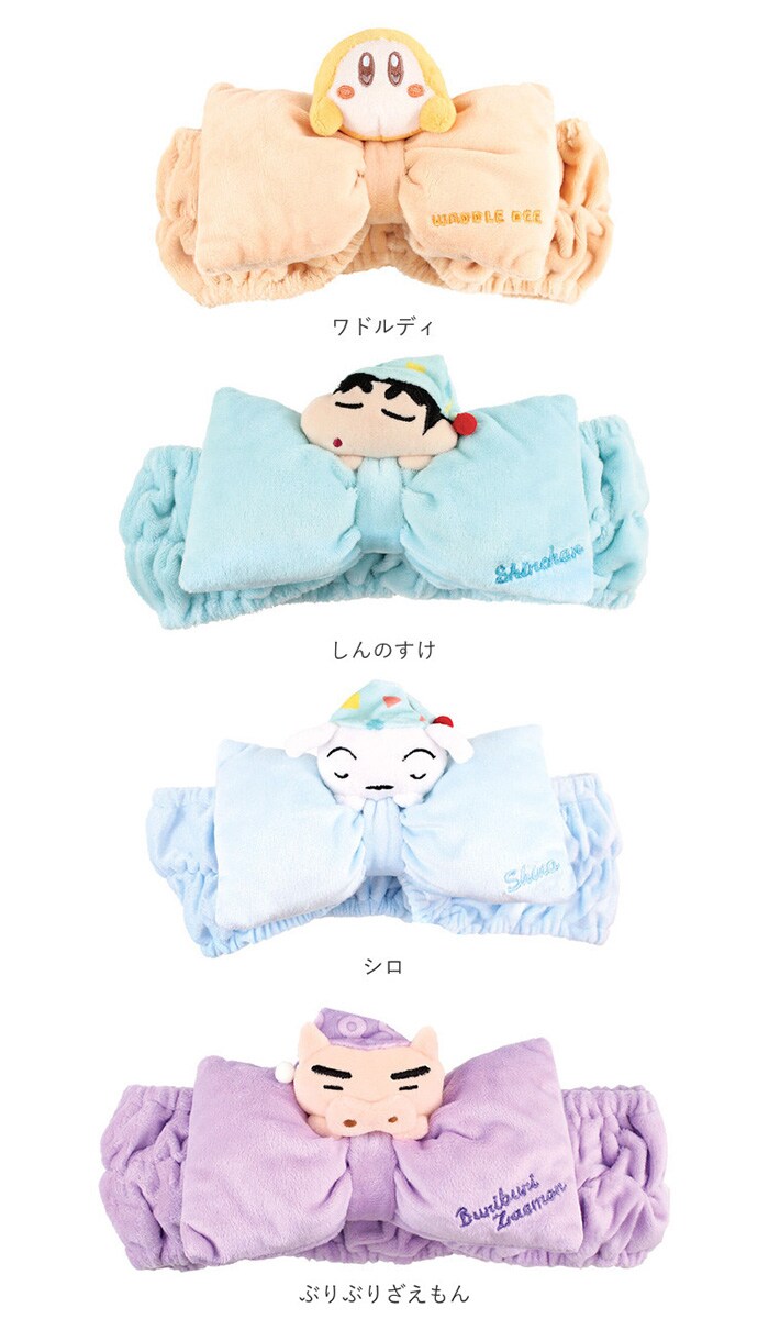 | 商品説明 | 洗顔やメイク時の髪留めにピッタリ♪可愛いキャラクターデザインのヘアバンドが発売。ずっと触れていたくなるようなふわふわ生地で、お肌に優しいのが嬉しい♪フロントの大きなリボンに、ちょこんとあしらわれたキャラクターがとってもキュート♪柔らかいゴムを使用したギャザー入りのバンドが、まとめた髪をしっかりホールド。頭を締め付けすぎない快適な着け心地で、おうちでのリラックスタイムにぴったりのアイテム◎ |