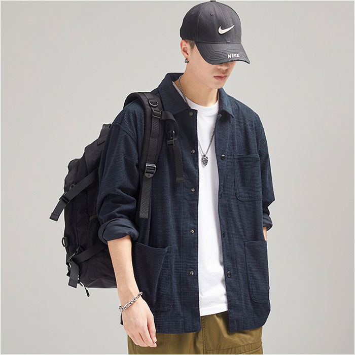 シャツ メンズ カジュアル【ネイビー】【XLサイズ】