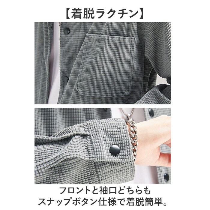 | 商品説明 | 【1枚で決まるこなれ感】どんなコーデにも合わせやすい万能カジュアルシャツ。【機能性とデザイン性】胸とサイド、3つのポケットがアクセントになった便利なデザイン。【絶妙なシルエット】カジュアルなのに上品に見える計算された仕立て。【合わせやすい無地】ボトムスとも相性抜群のベーシックカラー。立体感のある生地がこなれ感を演出。【着脱ラクチン】フロントと袖口どちらもスナップボタン仕様で着脱簡単。【秋冬にぴったりな生地感】ごわつかない質感だから羽織り用としても使いやすい。 |