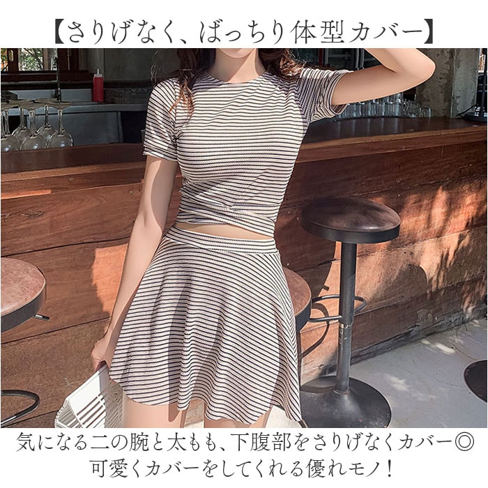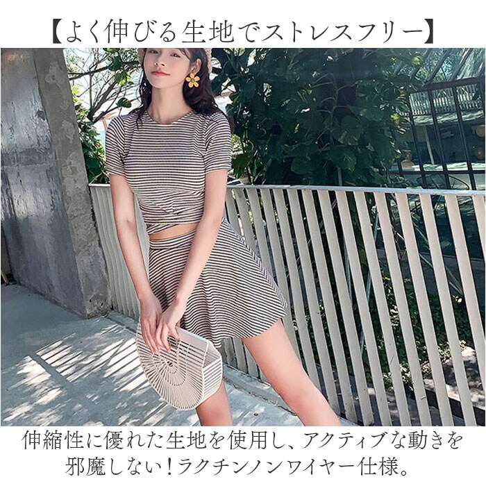 | 商品説明 | 【ほどよい肌魅せでヘルシー感UP】可愛さはそのままに、さりげなく体型カバー◎レディース水着 上下セットが登場。【ヘルシー水着をお探しの方へ☆】ほどよい露出で夏っぽさを演出しながらも、Tシャツタイプでヘルシーに。高バランスがGOOD♪【さりげなく、ばっちり体型カバー】気になる二の腕と太もも、下腹部をさりげなくカバー◎可愛くカバーをしてくれる優れモノ!【クロスリボンがこなれポイント☆】ウエストにはクロスして後で結べるクロスリボンをプラス!後ろ姿も可愛く魅せて、こなれ度UP☆【着るだけでスラっとスタイルUP】ハイウエストのフレアスカートは、脚長&美脚に仕上げてくれる!着るだけでスッキリ魅せ。【よく伸びる生地でストレスフリー】伸縮性に優れた生地を使用し、アクティブな動きを邪魔しない!ラクチンノンワイヤー仕様。【お着替え&トイレが楽なセパレート】お洋服感覚で着られるでセパレートタイプでラクチン!準備やお出かけ先でもスムーズ。【パンツ一体型だから安心】スカートの中には、ボクサータイプのインナーパンツを。水の中でめくれても安心。 |