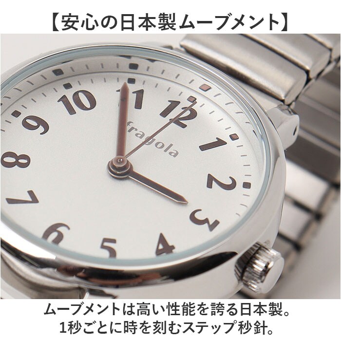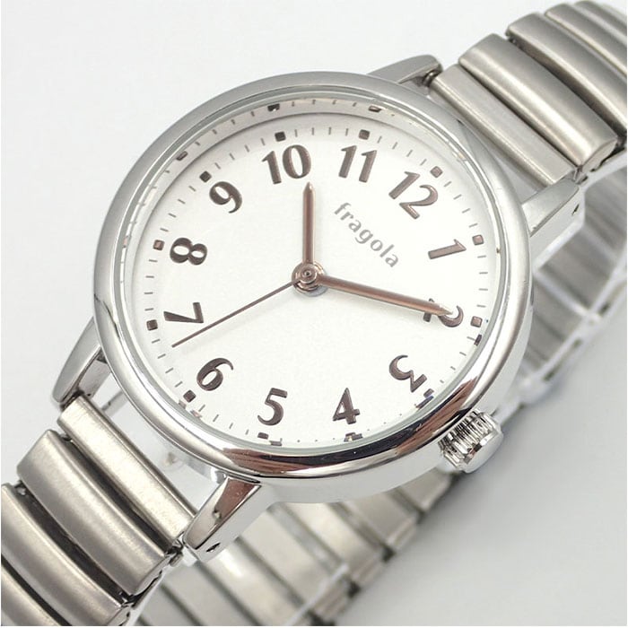 | 商品説明 | 【アクセサリー感覚でおしゃれに】ブレスレットのような着用感♪「fragola シンプルジャバラウォッチ」。【ワンタッチで簡単に着脱OK】ぐ~んと伸びるじゃばらタイプで、付け外しがスムーズ。忙しい朝も一瞬で装着完了。【手軽に使える日常生活防水タイプ】うれしい日常生活防水仕様。洗顔時・小雨などに一時的に濡れる程度なら大丈夫。(※)水仕事中、プールやお風呂場などでのご使用は故障の原因となるため、お控えください。【視認性の高いシンプルな文字盤】時刻を確認しやすい文字盤デザイン。文字盤ケース横のつまみで、簡単に時刻調節が可能。【安心の日本製ムーブメント】ムーブメントは高い性能を誇る日本製。1秒ごとに時を刻むステップ秒針。【シーンを選ばないシンプルデザイン】肌馴染みが良く、どんなコーデにも合わせやすいカラーをラインナップ。ギフトにもおすすめ! |