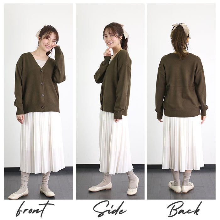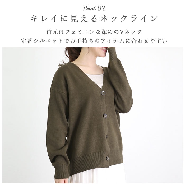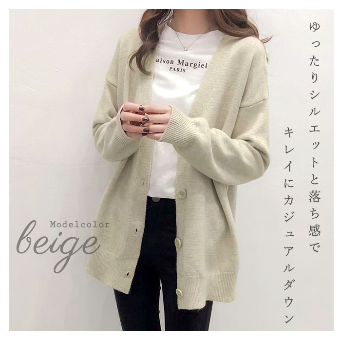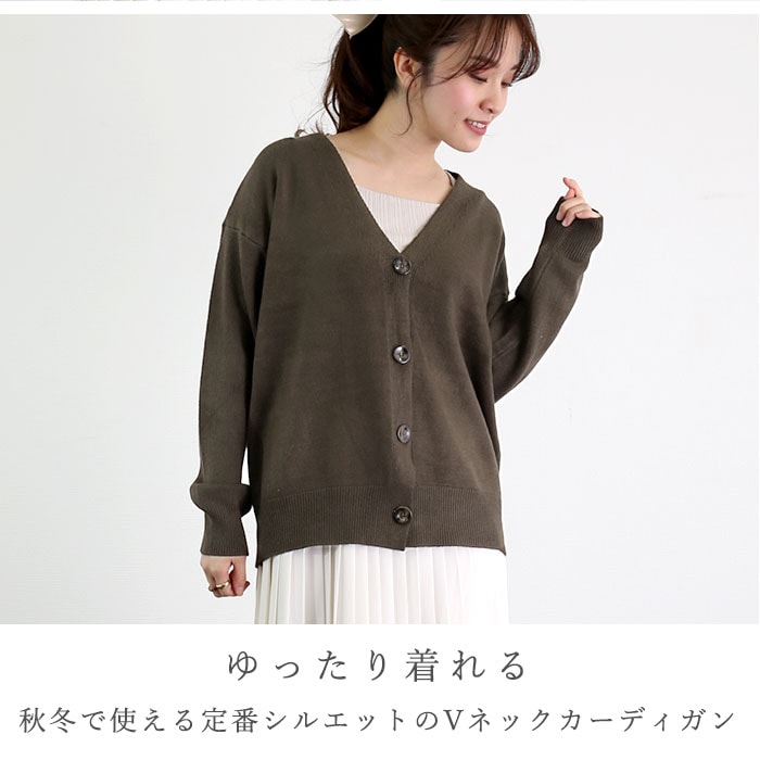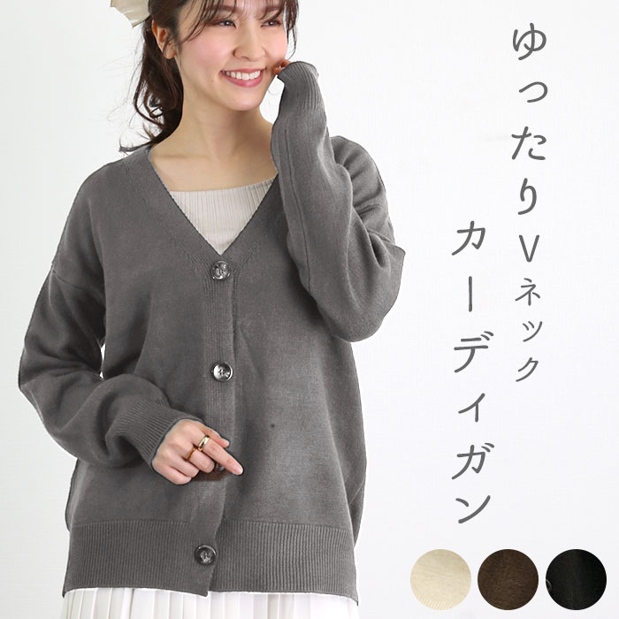 | 商品説明 | ゆったり着れるシンプルなVネックニットカーディガンが発売♪普段使いにはもちろん通勤通学にも気軽に着れるシンプルなデザイン。スッキリとしたVネックが垢抜け感をプラス。生地が厚めに作られているから、冬はもちろん少し肌寒くなった秋でもアウターとしても着れる〇少しゆとりのあるシルエットで体型カバーにも! |
