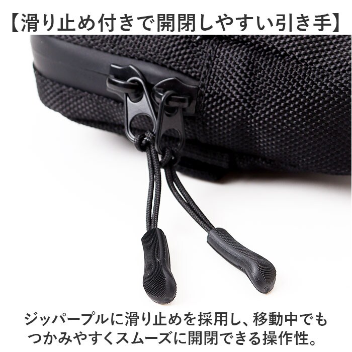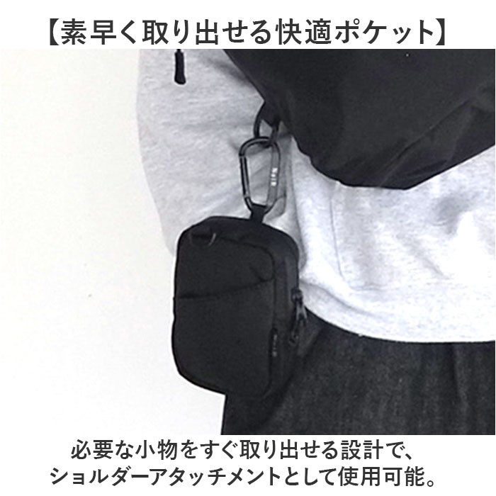 商品説明【マルチに使える機能性が嬉しい!】無駄な装飾を省いたシンプルなデザイン「NoiR ノアール Prompt pocket」。【素早く取り出せる快適ポケット】必要な小物をすぐ取り出せる設計で、ショルダーアタッチメントとして使用可能。【バッグにも装着できる2way仕様】付属のカラビナや面ファスナーベルトを使えば、お気に入りのバッグにぶら下げて持ち運べる!【よく使う物にちょうどいい収納力】イヤホンケースやパスケースなどを収めるのに最適で、拡張ポケットとして活躍。【起毛裏地が小物をやさしく保護】ポーチの内側には起毛生地を使用。スマホや小物の表面を傷つけにくくふんわりとやさしく保護。【カギなどの管理に便利なDカン】フロントにDカンを備え、鍵やお手持ちのアクセサリーを取り付けやすく整理しやすい!【撥水素材と止水ファスナーで安心】表生地の撥水加工と止水ファスナーが水濡れから荷物を守り、急な雨でも安心!(※)完全防水ではありません。【滑り止め付きで開閉しやすい引き手】ジッパープルに滑り止めを採用し、移動中でもつかみやすくスムーズに開閉できる操作性。【環境にやさしいサステナブル素材】廃棄ペットボトルを原料にした繊維糸を用いたGRS認証のリサイクルナイロン生地を採用。【日常から旅先まで幅広く使える相棒】通勤通学はもちろん、旅行やアウトドアにも連れて行きやすい軽快で頼れる携帯性が◎【日常に溶け込む万能カラー】ストリートにもモードにもマッチする、性別を問わないスタイリッシュな仕上がり。
