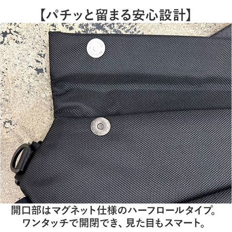| 商品説明 | 【収納力と機能性が嬉しい!】シンプルながらも個性的なフォルムが魅力「NoiR ノアール Hexa shoulder」。【パチッと留まる安心設計】開口部はマグネット仕様のハーフロールタイプ。ワンタッチで開閉でき、見た目もスマート。【整理上手になれる多機能ポケット】内側と外側に使い勝手の良いポケットを複数配置。底面にはメッシュホルダーを装備。【環境にやさしいサステナブル素材】廃棄ペットボトルを原料にした繊維糸を用いたGRS認証のリサイクルナイロン生地を採用。【雨の日も安心のはっ水加工】表面に水滴や汚れをサッと弾くはっ水加工を施しているから、急な雨でも安心!(※)完全防水ではありません。【ワンタッチで外せる快適ショルダー】バックルベルト仕様のショルダーは簡単に着脱可能。使いやすさを追求した設計。【ストラップ類の取付けに便利】お手持ちのストラップやカラビナなどの取り付けに便利なDリングをサイドに搭載。【日常に溶け込む万能カラー】ストリートにもモードにもマッチする、性別を問わないスタイリッシュな仕上がり。 |