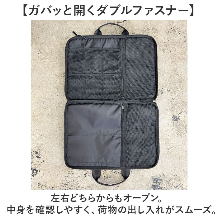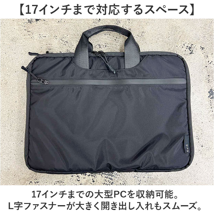 | 商品説明 | 【収納力と機能性が嬉しい!】無駄な装飾を省いたシンプルなデザイン「NoiR ノアール Fab PC case」。【ガバッと開くダブルファスナー】左右どちらからもオープン。中身を確認しやすく、荷物の出し入れがスムーズ。【PCもタブレットもまとめて持てる】PCやタブレットをすっきりと収められる2層構造で、通勤や通学でも頼れる快適収納!【ビジネスシーンで活躍する2層構造】PC本体と周辺機器をそれぞれ分けて入れられる構造で、必要なものをひと目で把握!【17インチまで対応するスペース】17インチまでの大型PCを収納可能。L字ファスナーが大きく開き出し入れもスムーズ。【フルオープンで見渡せる整理力】周辺機器を入れるポケットは180度開く!ケーブルやマウスが一度で確認できる見やすい仕様。【起毛素材で守るタブレット収納】内側にはタブレットをふんわり包む起毛素材を採用し、画面を傷つけにくい嬉しい設計。【小物管理に便利な多彩ポケット】スマホやメモ帳、ガジェット類をきれいに区分けできるポケットが多く、整理がしやすい◎【雨の日でも安心できる撥水素材】ちょっとした水滴を弾く撥水仕様で、外出時の急な雨から大切なPCを守る心強い耐水性。(※)完全防水ではありません。【移動を助けるキャリーオンベルト】キャリーケースに通せるベルト付きで、出張や旅行、学校での移動も軽やかにサポート。【環境にやさしいサステナブル素材】廃棄ペットボトルを原料にした繊維糸を用いたGRS認証のリサイクルナイロン生地を採用。【日常に溶け込む万能カラー】ストリートにもモードにもマッチする、性別を問わないスタイリッシュな仕上がり。 |