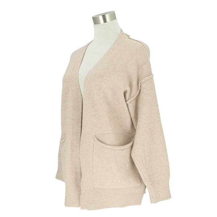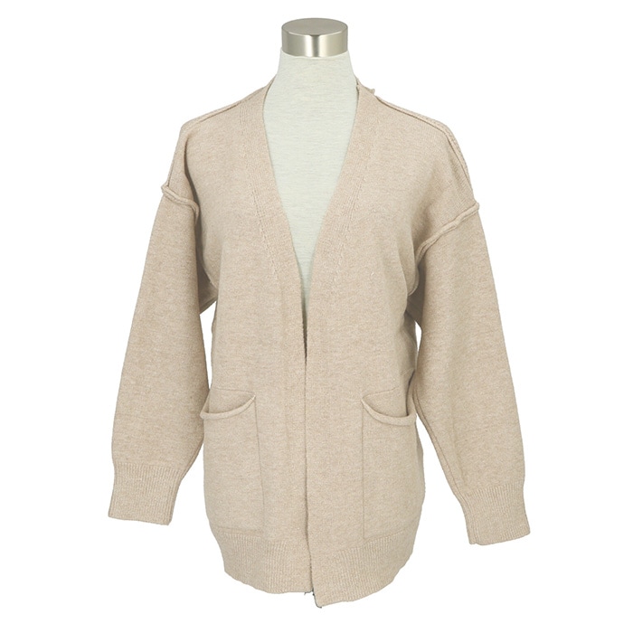 | 商品説明 | ゆったりとオーバサイズで着こなせる、今っぽさ満点のニットカーディガンが登場。合わせるインナーを選ばないVネックデザイン。ボタンレスだから、かっちりとし過ぎない、こなれた感じも◎くるんと丸まったポケットのデザインも可愛い。しっとりと柔らかなニット素材とベーシックなカラーは、大人の女性のデイリーウェアーにぴったり。 |