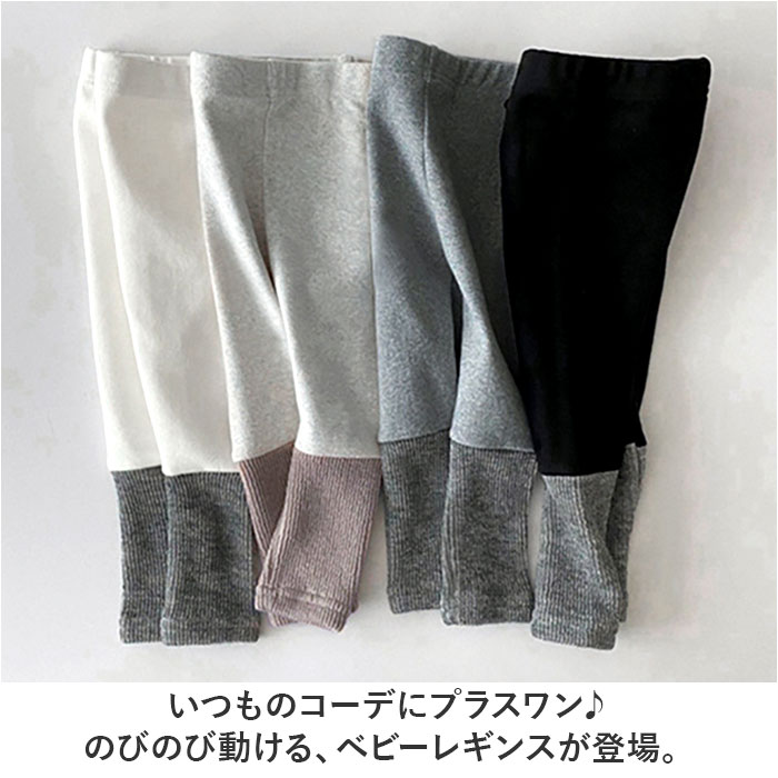 | 商品説明 | いつものコーデにプラスワン♪のびのび動ける、ベビーレギンスが登場。【素肌に優しくベビーも安心】柔らかく優しいコットン混紡素材を使用。チクチク感がなく、肌寒い季節はふんわり防寒。汗をかいてもムレにくい!【動きを妨げずストレスフリー】ストレッチ性にも優れており、体のラインに心地よくフィット。元気いっぱい動き回るお子さまにぴったり。【着替えも簡単】締めつけ感のないウエストゴム仕様。しっかり伸びて着脱しやすく、着替えもおむつ替えもスムーズ。【縦リブでさりげないアクセント】下部は足元がすっきり見える、リブ仕様の縦ライン。メリハリのあるバイカラーデザイン◎【シンプルで着回し力抜群】どんなお洋服にも合わせやすい、ナチュラルな仕上がり。洗い替え用に色違いで揃えるのもおすすめ。 |