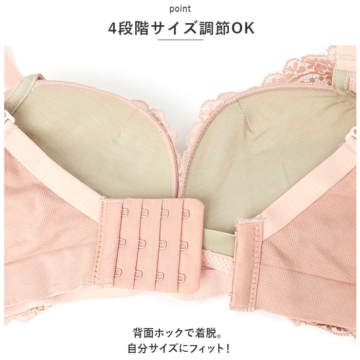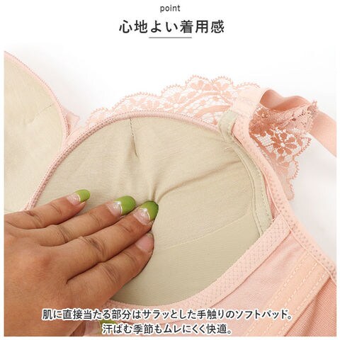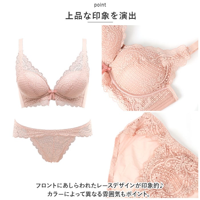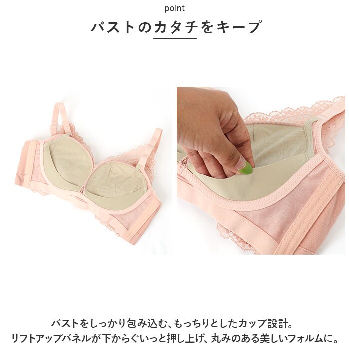 | 商品説明 | 簡単バストメイク♪きれいなシルエットを作り出すブラと、ショーツのセットが新登場。【上品な印象を演出】フロントにあしらわれたレースデザインが印象的♪カラーによって異なる雰囲気もポイント。《ブラジャー》【ストレスフリー】窮屈感が苦手な方にぴったり。バックは伸縮性のある素材で、アンダー部分は締めつけ感のないノンワイヤータイプ◎【バストのカタチをキープ】バストをしっかり包み込む、もっちりとしたカップ設計。リフトアップパネルが下からぐいっと押し上げ、丸みのある美しいフォルムに。【脇高設計】バストの揺れを抑えて横流れを防止。背中もキレイ魅せ!【心地よい着用感】肌に直接当たる部分はサラッとした手触りのソフトパッド。汗ばむ季節もムレにくく快適。【4段階サイズ調節OK】背面ホックで着脱。自分サイズにフィット!《ショーツ》【誰でも使いやすいベーシックデザイン】お尻を優しく包み込んでくれる、ベーシックなカタチ◎クロッチ部分は安心の二重構造。【大人な仕上がり】大人女子にぴったり♪透け感のある素材をプラス。 |