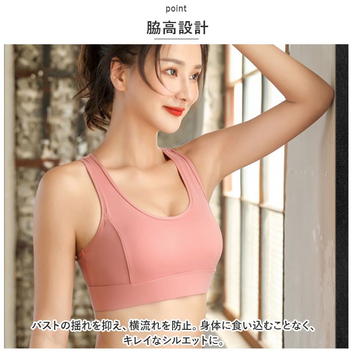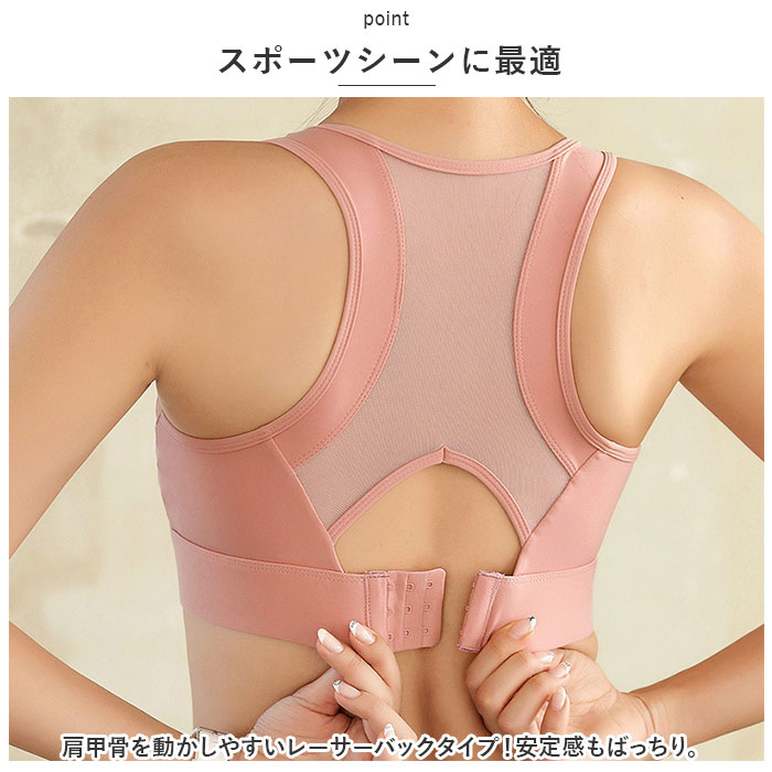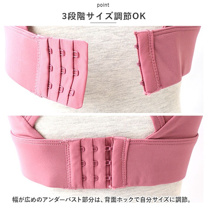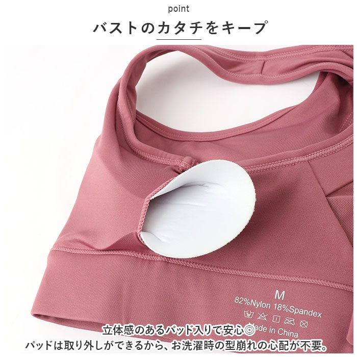 | 商品説明 | ノンワイヤーだけどしっかりホールド!着心地に優れたスポーツブラが新登場。【スポーツシーンに最適】肩甲骨を動かしやすいレーサーバックタイプ!安定感もばっちり。【脇高設計】バストの揺れを抑え、横流れを防止。身体に食い込むことなく、キレイなシルエットに。【バストのカタチをキープ】立体感のあるパッド入りで安心◎パッドは取り外しができるから、お洗濯時の型崩れの心配が不要。【3段階サイズ調節OK】幅が広めのアンダーバスト部分は、背面ホックで自分サイズに調節。【汗をかいても快適】全体にサラッとした生地を使用。背中に当たる部分はメッシュ仕様で、ムレにくいのもポイント。【ストレッチ性も!】体の動きに合わせて心地よくフィット。【様々なシーンで】ヨガやフィットネス、自宅でのエクササイズなどで大活躍。 |