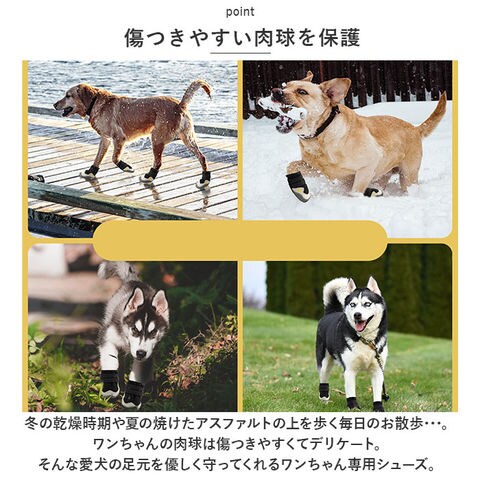 | 注意点 | 【ピッタリサイズをチョイス!】小型犬から大型犬まで、ワンちゃんの足の大きさに合わせてピッタリサイズが選べる、「1号サイズ」(足幅4.0cm)から「5号サイズ」(足幅6.0cm)までの5サイズ展開。海外輸入品のため、商品によってはパッケージや説明書が、英語や中国語表記となっている場合があります。商品を安価でご提供させていただくため、輸入時のパッケージのままでのお届けとなります。予めご了承くださいませ。商品の写真はできる限り実物のお色に近づけるように加工しておりますが、お使いのモニター設定、お部屋の照明などにより、実際の商品と異なる場合がございます。商品の生産時期などにより、付属品(ボタン、ファスナー、タグ、パッケージなど)のデザインや仕様の一部が変更になる場合がございますが、予めご了承くださいませ。商品や個体差などにより、表記と若干異なる場合がございますが、予めご了承くださいませ。輸入品のため、糸の継ぎ目や縫製等が甘い部分、糊跡等が生じる場合がございますが、予めご了承くださいませ。生地の特性上、やや匂いが強く感じられるものもございます。数日のご使用や陰干しなどで気になる匂いはほとんど感じられなくなります。お手入れなどはタグなどの表記をご確認ください。配送の方法によっては、商品に多少のシワ等ができる場合がございますが、出来る限りお客様にリーズナブルな価格帯でご提供するためです。ご了承くださいませ。採寸方法の違いにより、多少の誤差がある場合がございます。 |