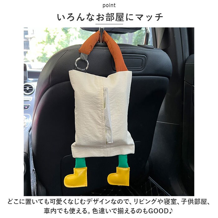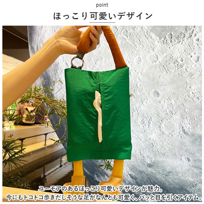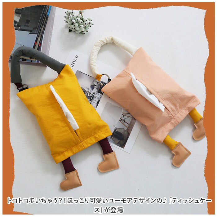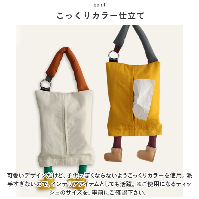| 商品説明 | トコトコ歩いちゃう?!ほっこり可愛いユーモアデザインの♪「ティッシュケース」が登場【ほっこり可愛いデザイン】ユーモアのあるほっこり可愛いデザインが魅力。今にもトコトコ歩きだしそうな足がなんとも可愛く、パッと目を引くアイテム。【吊り下げOK】吊り下げ紐つき!車のヘッドレストに吊り下げたり、お部屋の壁に掛けられて便利◎省スペースでお部屋もすっきり。【いろんなお部屋にマッチ】どこに置いても可愛くなじむデザインなので、リビングや寝室、子供部屋、車内でも使える。色違いで揃えるのもGOOD♪【こっくりカラー仕立て】可愛いデザインだけど、子供っぽくならないようこっくりカラーを使用。派手すぎないので、インテリアアイテムとしても活躍。※ご使用になるティッシュのサイズを、事前にご確認下さい。 |