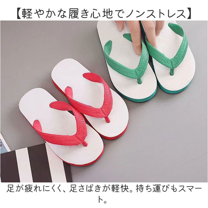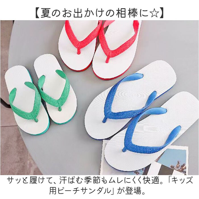 | 商品説明 | 【夏のお出かけの相棒に☆】サッと履けて、汗ばむ季節もムレにくく快適。「キッズ用ビーチサンダル」が登場。【ラフで涼しげなトングタイプ】つま先部分が下駄の鼻緒のようなフォルム。足の甲を覆わず圧迫感がないので、通気性も抜群。【足裏に負担をかけず疲れを軽減】程よい厚みの低反発ソール。足にかかる衝撃を吸収。【雨の日も夏のレジャーでも】水しても大丈夫!プールや海水浴などのレジャーシーンでも重宝。【屈曲性があり、歩きやすさが向上】つま先部分が足の動きに合わせて、柔軟に曲がる◎しっかり蹴り上げやすい!【安定感のある歩行をサポート】底面は凹凸を施した、滑りにくいつくり。フラットで安定感もばっちり。【軽やかな履き心地でノンストレス】足が疲れにくく、足さばきが軽快。持ち運びもスマート。【お気に入りを選べるカラー】男の子も女の子も選べるカラーバリエーション。無駄な装飾のないシンプルデザイン。 |