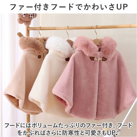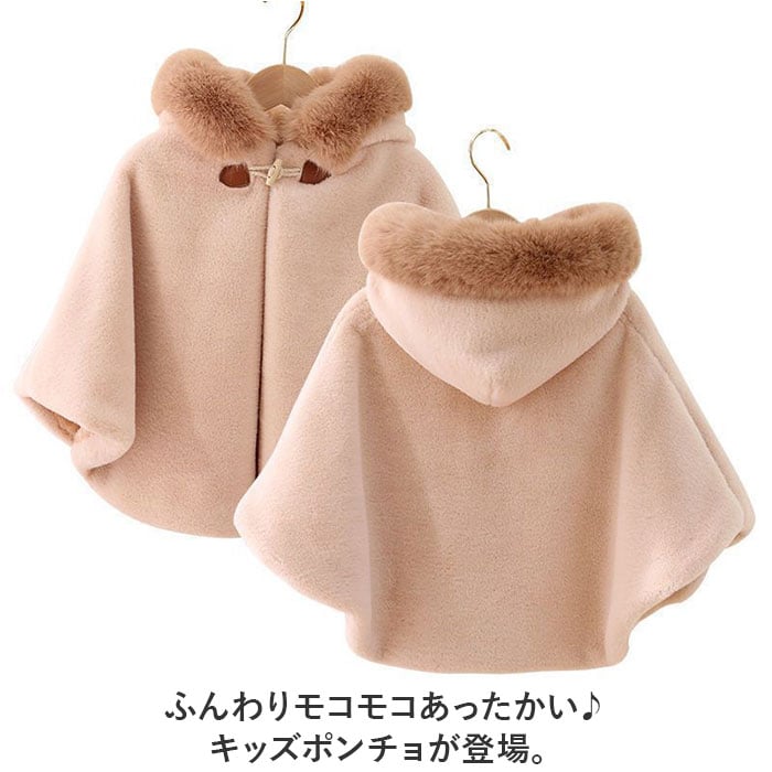 | 商品説明 | ふんわりモコモコあったかい♪キッズポンチョが登場。【もこもこ素材でふんわりあったか】ふんわりもこもこであったかい着心地。毛布のような着心地で、寒い季節の羽織モノとして大活躍するポンチョケープ。【ファー付きフードでかわいさUP】フードにはボリュームたっぷりのファー付き。フードをかぶればさらに防寒性と可愛さもUP♪【一つボタン仕様】フロントのトグルボタンを留めるだけなので、お子さま一人でも着脱ラクラク。【豊富なサイズ展開】成長に合わせて選べるサイズ展開。お友達や姉妹お揃いで着るのもおすすめ!【様々なシーンで活躍】優しい色合いのポンチョは普段使いはもちろん、華やかなドレスやワンピースなどフォーマルスタイルにもマッチ。 |