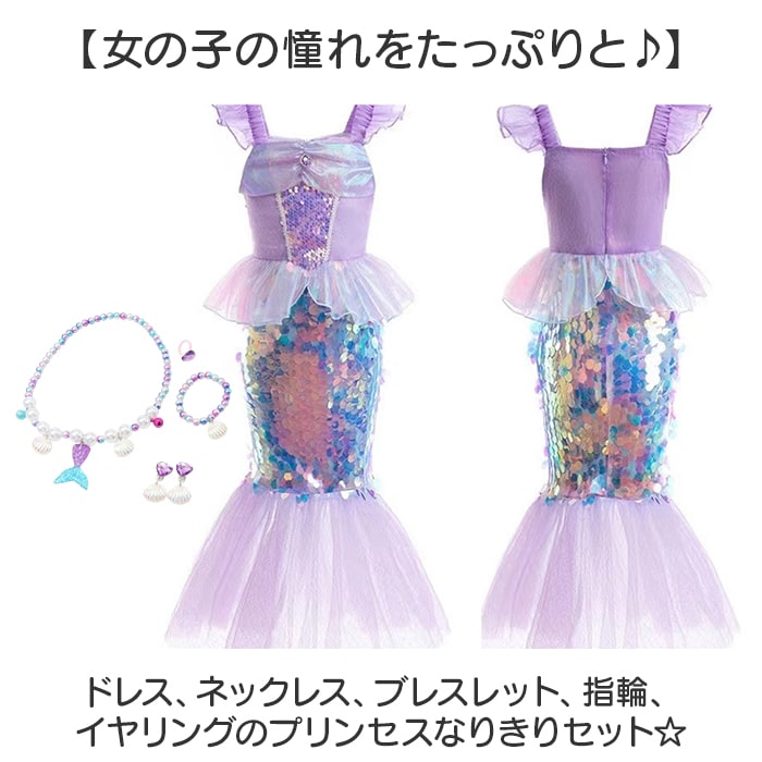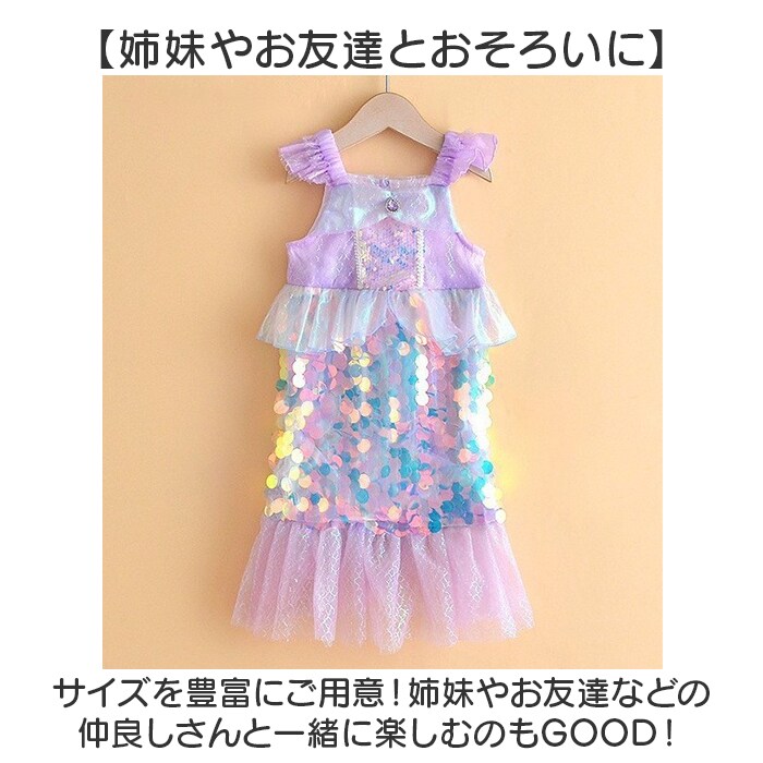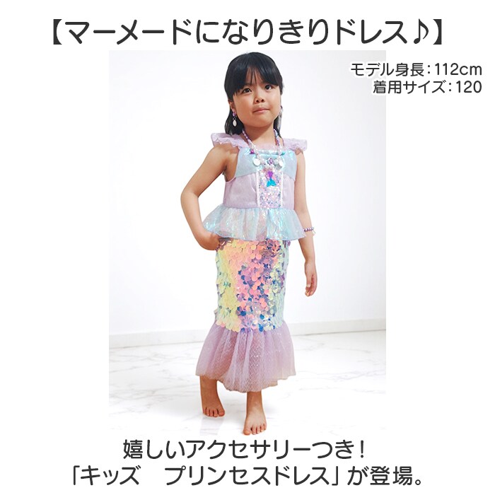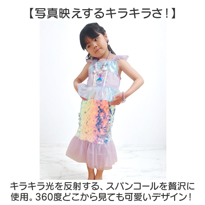 | 商品説明 | 【マーメードになりきりドレス♪】嬉しいアクセサリーつき!「キッズ プリンセスドレス」が登場。【女の子の憧れをたっぷりと♪】ドレス、ネックレス、ブレスレット、指輪、イヤリングのプリンセスなりきりセット☆【写真映えするキラキラさ!】キラキラ光を反射する、スパンコールを贅沢に使用。360度どこから見ても可愛いデザイン!【お子様も安心のゴム仕様】肩ひもはゴム仕様だから、しゃがみ姿勢も苦しくない◎ネックレスとブレスレットもゴムタイプ。【チクチクしにくい裏生地】お肌に触れる部分には、裏生地をプラス。着心地にもこだわった高品質な1枚。【簡単お着換えでラクラク】後ろのファスナーをしめるだけで、簡単にお着換え終了!お仕度もラクチン!【姉妹やお友達とおそろいに】サイズを豊富にご用意!姉妹やお友達などの仲良しさんと一緒に楽しむのもGOOD! |
