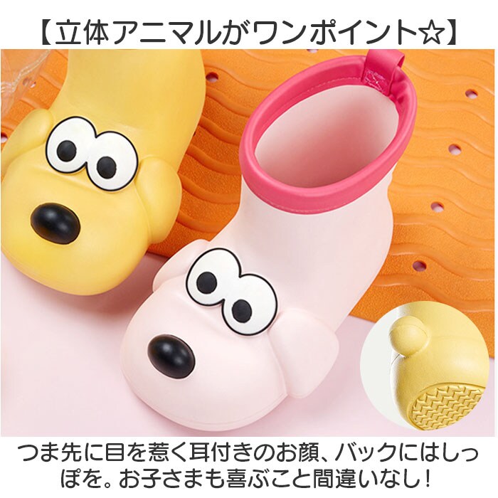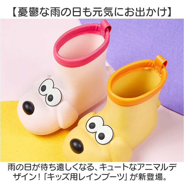 | 商品説明 | 【憂鬱な雨の日も元気にお出かけ】雨の日が待ち遠しくなる、キュートなアニマルデザイン!「キッズ用レインブーツ」が新登場。【立体アニマルがワンポイント☆】つま先に目を惹く耳付きのお顔、バックにはしっぽを。お子さまも喜ぶこと間違いなし!【いつでもどこでも足入れスムーズ】スッと足入れできて、脱ぎ履きの手間を軽減してくれるプルタブ付き。【柔らか素材で歩きやすさが向上】軽やかで柔軟に対応でき、足の動きを妨げない!つま先は蹴り上げやすい、上向き形状。【足裏への負担を抑えて快適】弾力のある本体に加え、ソフトなインソール付きで疲れにくい!取り外して洗えて衛生的。【水に強くお手入れ簡単】表面は水に強い素材で、雨の日の相棒に最適。お手入れも拭き取るだけ。(※)完全防水ではありません。【お気に入りの子をチョイス!】カラフル&ポップなデザインで心もウキウキ!兄弟・姉妹やお友だちとお揃いも! |