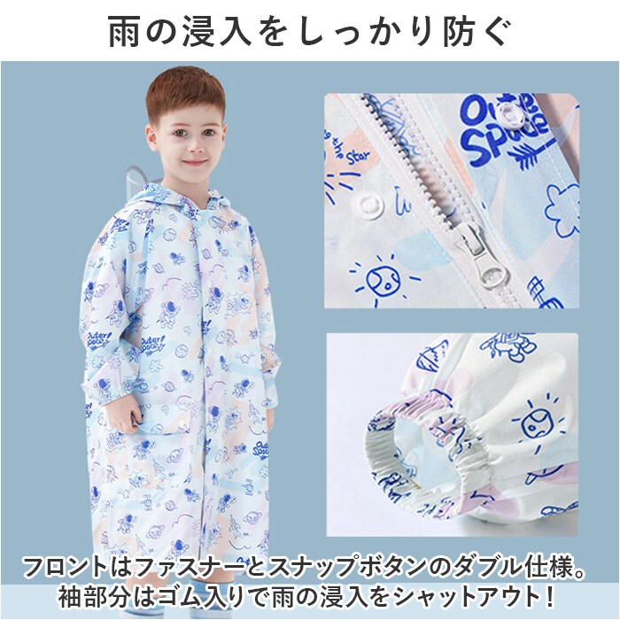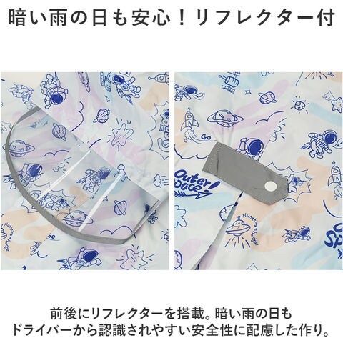 | 商品説明 | ランドセル対応◎リフレクター&クリア窓付きで安全性にも配慮した、キッズレインコートが登場。【ランドセルごとまるっとカバー◎】ランドセルやリュックを背負ったままレインコートを着用できる背マチ付き。背中のマチはスナップボタンで簡単調節!【雨の浸入をしっかり防ぐ】フロントはファスナーとスナップボタンのダブル仕様。袖部分はゴム入りで雨の浸入をシャットアウト!【暗い雨の日も安心!リフレクター付】前後にリフレクターを搭載。暗い雨の日もドライバーから認識されやすい安全性に配慮した作り。【クリア窓で視界が良好!】フードにはクリア窓がついており、被ったままでもまわりがよく見える!雨が強い日でも安心。【大きめの巾着袋つき】濡れたレインコートを収納できる、収納袋をセットに。巾着タイプなのでお子様も扱いやすい。【選べるサイズ&デザイン】ポップなイラストがとってもキュート。サイズも選べるので成長に合わせてチョイス! |
