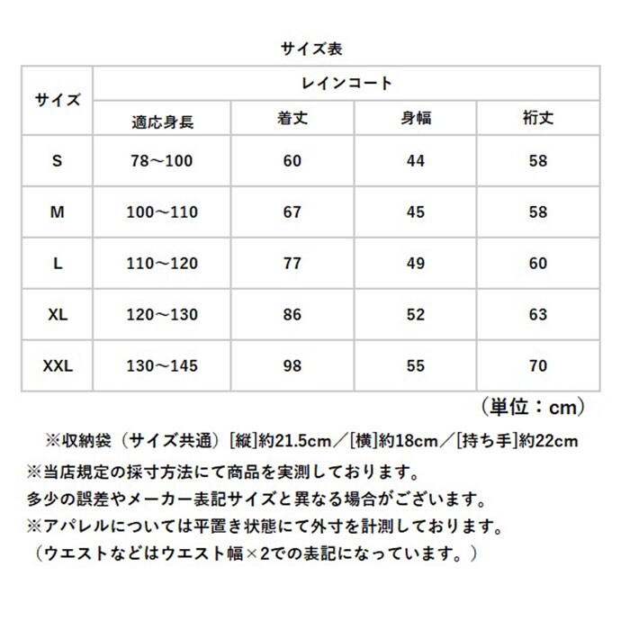 | サイズ | [キッズ] ・Sサイズ ・Mサイズ ・Lサイズ ・XLサイズ ・XXLサイズ ※サイズについて詳細は、商品画像の中にあるサイズ表をご覧くださいませ。 |