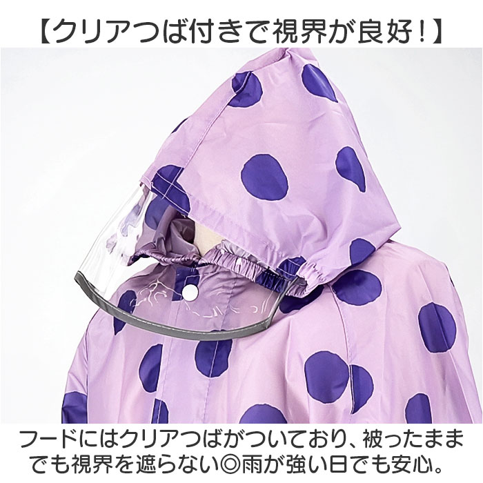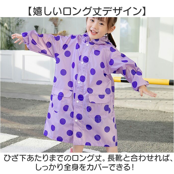 | 商品説明 | 【ランドセル対応&視界良好◎】通学お出かけにぴったりの「レインコート 女の子 収納袋付き」が登場。【ランドセルごと、まるっとカバー◎】ランドセルやリュックを背負ったままレインコートを着用できる、背中のマチつきタイプ!【クリアつば付きで視界が良好!】フードにはクリアつばがついており、被ったままでも視界を遮らない◎雨が強い日でも安心。【専用の収納袋つきで使いやすい】濡れたレインコートを収納できる、収納袋がセットに。大きめなので自分でしまいやすい!【雨水が浸入しにくい仕様】ファスナーとスナップボタンのダブル仕様。手首にはゴムを採用し、水濡れしにくい作り。【嬉しいロング丈デザイン】ひざ下あたりまでのロング丈。長靴と合わせれば、しっかり全身をカバーできる!【便利なポケットつき!】鍵やパスケース、タオルなどの小物を収納できる、フラップポケットつき。 |