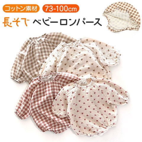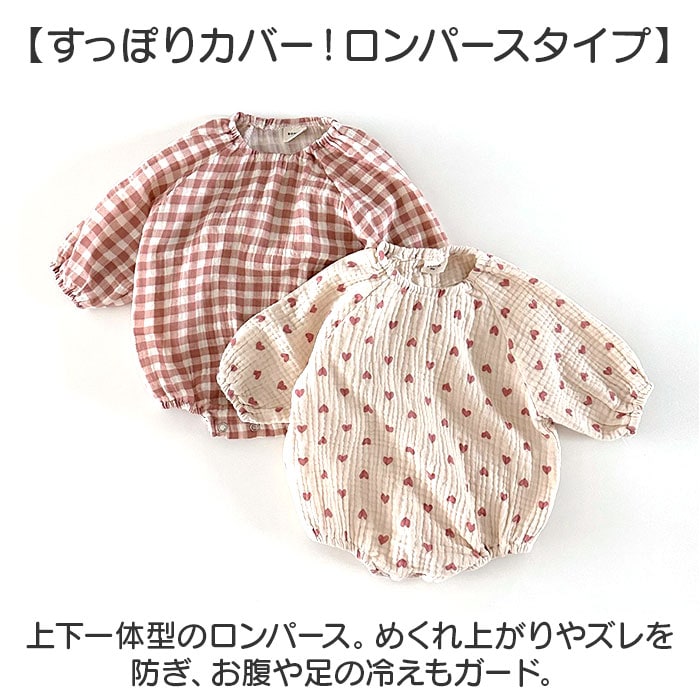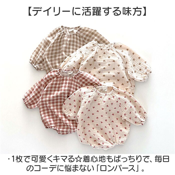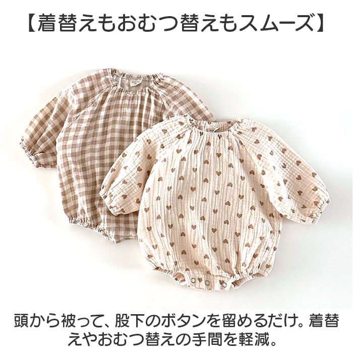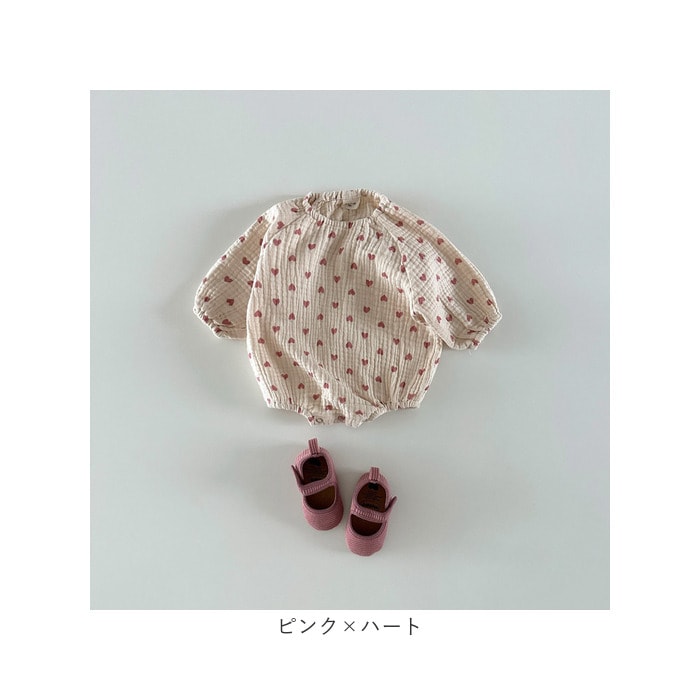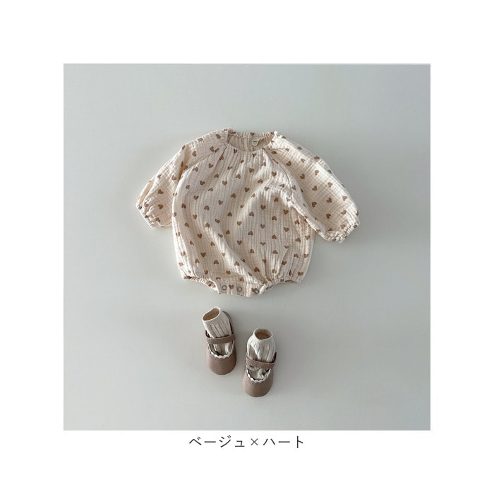 ロンパース【ベージュ×ハート】【80適応身長73-80cm】