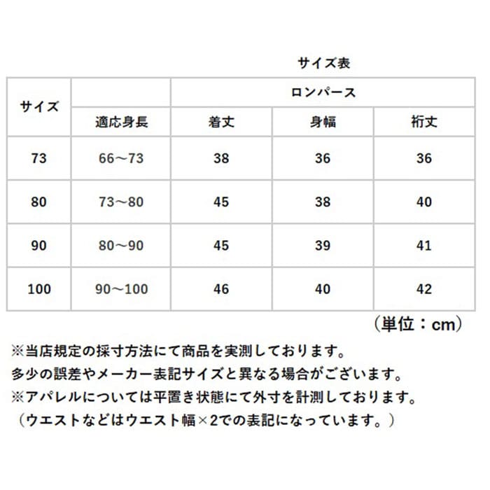 | サイズ | [ベビー] ・73サイズ ・80サイズ ・90サイズ ・100サイズ ※サイズについて詳細は、商品画像の中にあるサイズ表をご覧くださいませ。 |