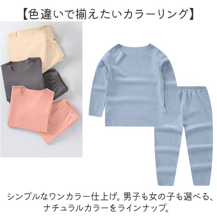 | 商品説明 | 【抜群の着心地でお家時間を快適に】睡眠時や、普段のルームウェアとして大活躍!キッズ用の「長袖パジャマ」。【締めつけ感のないセットアップ】首元が詰まりすぎないクルーネックトップス&ウエストゴムでストレスなく履けるパンツ。【柔らかく温かみのある生地感】両面ともにしっとりとした微起毛素材。ふんわりあったか、チクチク感もゼロ◎【いつでもスムーズにお着替え】すっぽり被ったり、サッと足入れOK。大きくなったら1人でお着替えチャレンジ♪【動きを妨げず自分サイズにフィット】ストレッチ性のある素材で、元気に動きまわるキッズにぴったり!締め付けずに優しく馴染む◎【色違いで揃えたいカラーリング】シンプルなワンカラー仕上げ。男子も女の子も選べる、ナチュラルカラーをラインナップ。 |