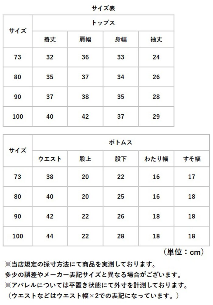 | サイズ | [ベビー] ・73cm ・80cm ・90cm ・100cm ※サイズについて詳細は、商品画像の中にあるサイズ表をご覧くださいませ。 |