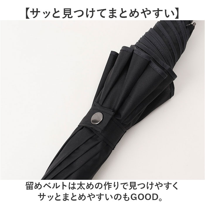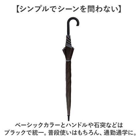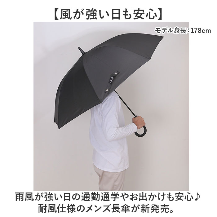 | 商品説明 | 【風が強い日も安心】雨風が強い日の通勤通学やお出かけも安心♪耐風仕様のメンズ長傘が新発売。【風に強く丈夫な素材】親骨と受け骨は全てグラスファイバーを使用。しなやかで折れにくいのが一番のポイント!【大柄な男性でも安心】男性の体もすっぽりと収まる親骨65mサイズ。開くと直径約112cmとビッグサイズ♪【サッと開くジャンプ式】ワンタッチで開くジャンプ式の傘。片手が荷物で埋まっている時もサッと開ける◎【手元にボタンで開きやすい】ハンドルの手元に傘を開くボタンが付いているAジャンプボタン。【滑りにくい石突】石突の先端はラバー素材になっており、壁やフェンスなどに立てかけている時に倒れにくい。【シンプルでシーンを問わない】ベーシックカラーとハンドルや石突などはブラックで統一。普段使いはもちろん、通勤通学に。【日差し対策用にも】紫外線をカットする機能もあり、晴れている日のお出かけのお供に。※【スナップボタン式のベルト】留めバンドは、スナップボタン仕様でパチッと留めるだけでOK。【サッと見つけてまとめやすい】留めベルトは太めの作りで見つけやすくサッとまとめやすいのもGOOD。【荷物や送迎が多い女性の方に】大きなサイズで雨からカバーしてくれるので荷物が多い時や送迎用として女性の方にも!【注意事項】※ カラーにより紫外線カット率が異なります。 |