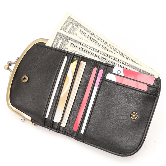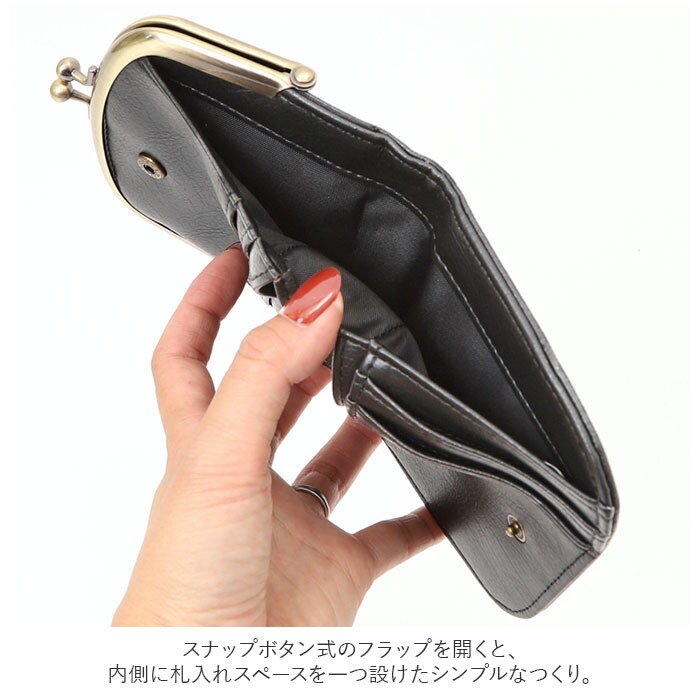 | 商品説明 | レトロ可愛いがま口スタイル♪大人女子に人気のLafiel(ラフィール)から、フェイクレザー・二つ折りミニ財布が新登場。ふんわり柔らかな質感のフェイクレザーで、コロンと手のひらにフィットする小ぶりサイズに仕上げたミニウォレット。「パチンッ」と開く、昔懐かしいがま口タイプのコインケースをフロントに配置。口が大きく開くので、中のコインが見やすく取り出しも楽ちん。コインスペース内側のミニポケットは、チケットの半券やお家のカギなど細々とした小物の収納に便利。スナップボタン式のフラップを開くと、内側に札入れスペースを一つ設けたシンプルなつくり。札入れの前側にカードポケット×5ヶ所、差し込みフリーポケットも2ヶ所あるので、お財布の中でかさばりがちなカード類もすっきり!落ち着いたベーシックカラーのフェイクレザーが、カジュアルからフォーマルまで様々のスタイルにフィット。普段使いの小物にも上質を求める方にぴったり。 |