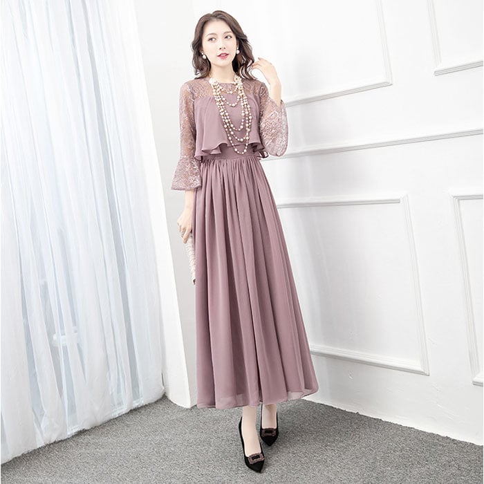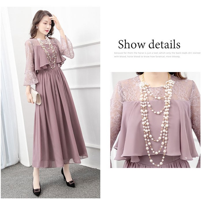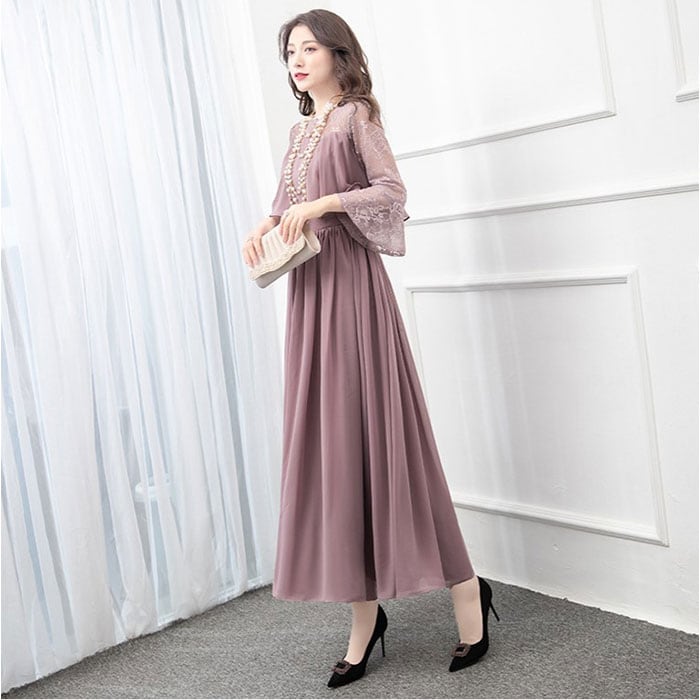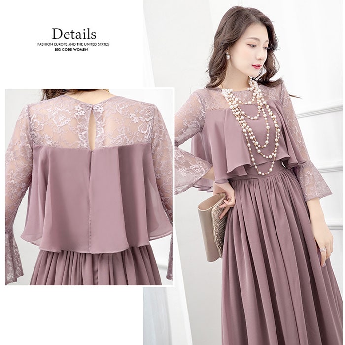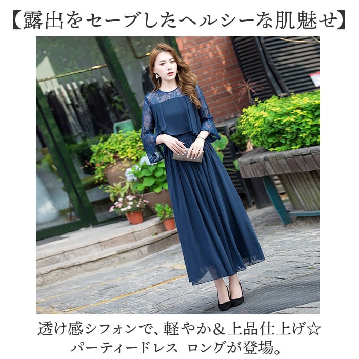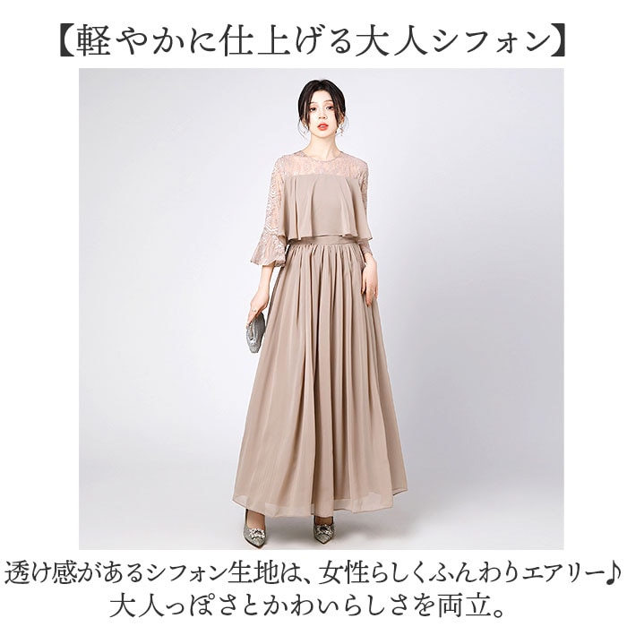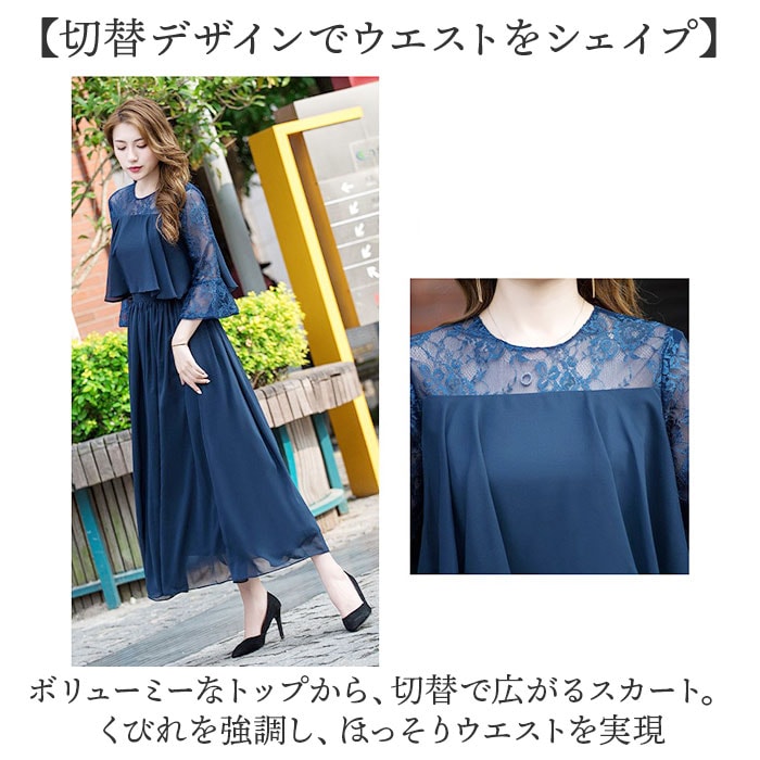 | 商品説明 | 【露出をセーブしたヘルシーな肌魅せ】透け感シフォンで、軽やか&上品仕上げ☆ パーティードレス ロングが登場。【ほどよい肌魅せで大人の魅力度UP】レーシーな肌魅せで、すっきり抜け感をON。ロング丈でも重たい印象にならず、上品な雰囲気に♪【切替デザインでウエストをシェイプ】ボリューミーなトップから、切替で広がるスカート。くびれを強調し、ほっそりウエストを実現【キレイ魅せしながら着心地は楽々】身体のラインをキレイに魅せる、ハイウエストデザイン。締め付け感の少ない作りなので楽チン【軽やかに仕上げる大人シフォン】透け感があるシフォン生地は、女性らしくふんわりエアリー♪大人っぽさとかわいらしさを両立。【ロングシーズンOKの袖感が嬉しい】季節を問わずロングシーズン着用できる、五分袖がポイント。お呼ばれスタイルはこれでキマり☆【いろいろなシーンで活躍】お食事会やセレモニー、結婚式などのお呼ばれシーンで活躍。ひとつは欲しい大人のドレス。 |