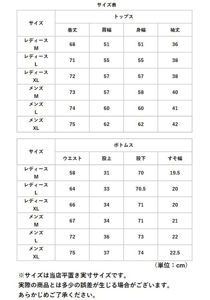 | サイズ | [レディース] ・Mサイズ ・Lサイズ [メンズ] ・Lサイズ ・XLサイズ ※サイズについて詳細は、商品画像の中にあるサイズ表をご覧くださいませ。 |