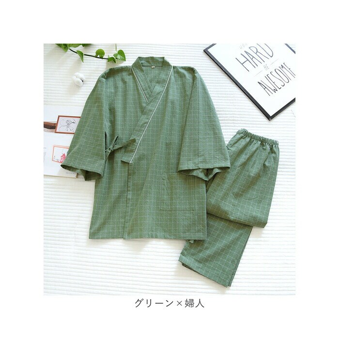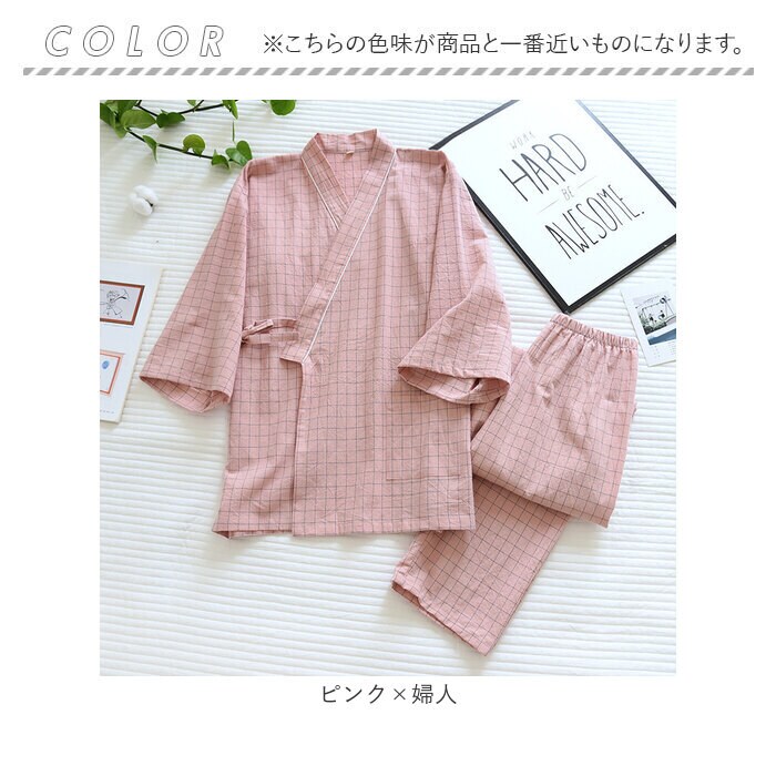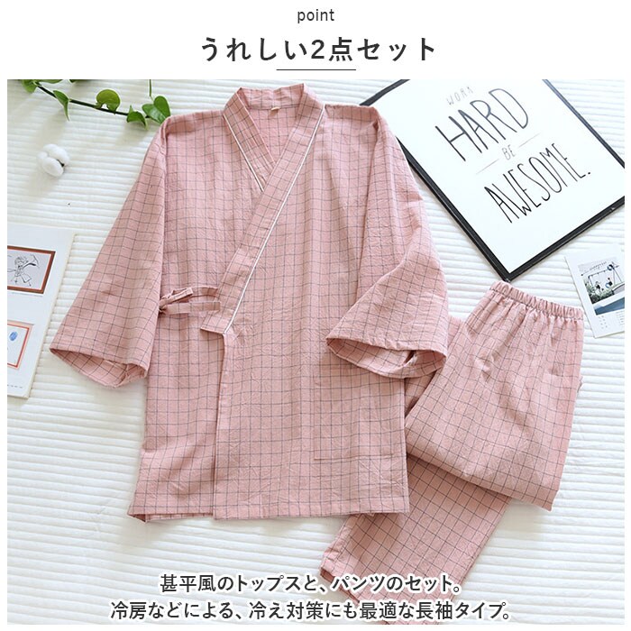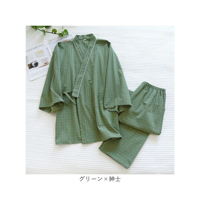 | 商品説明 | リラックスタイムをもっと快適に。夏にぴったりの、甚平風セットアップが新登場。【うれしい2点セット】甚平風のトップスと、パンツのセット。冷房などによる、冷え対策にも最適な長袖タイプ。【柔らかく優しい肌触り】サラッと軽いコットン素材を使用。お肌に優しく、汗ばむ季節もムレにくい!【ストレスフリーな着用感】程よくゆったりとしたシルエットで、締めつけ感なし☆入院着などにもおすすめ。【ペア使いできるカラー&サイズ】落ち着きのあるカラーをラインナップ。ユニセックス仕様のサイズ展開なので、お揃いで着用可能。《トップス》【サッと羽織れるつくり】バタバタしがちなお風呂上がりにも、スムーズに着用できる和式の前開きタイプ!内紐&外紐付きで、はだけにくいのもポイント。【便利なポケット付き】片サイドに配置されたポケットには、スマホなどをIN。《パンツ》【快適なロングパンツ】窮屈感がなく、サッと着脱できるウエストゴム仕様。単体使いもOK。 |