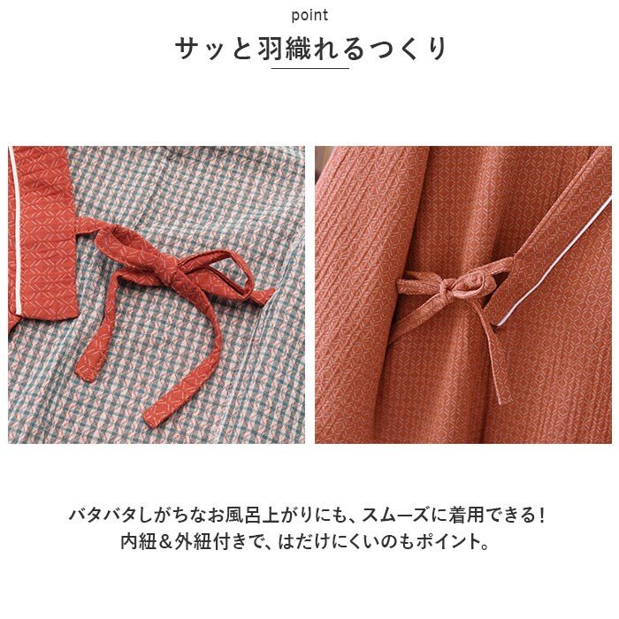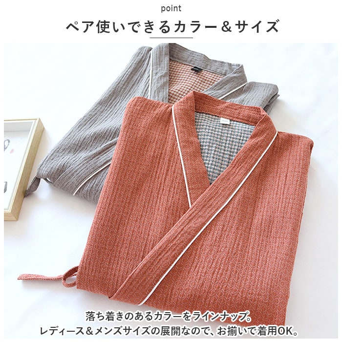 | 商品説明 | リラックスタイムをもっと快適に。夏にぴったりの甚平風パジャマが新登場。【サッと羽織れるつくり】バタバタしがちなお風呂上がりにも、スムーズに着用できる!内紐&外紐付きで、はだけにくいのもポイント。【柔らかく優しい肌触り】サラッと軽いコットン素材を使用。お肌に優しく、汗ばむ季節もムレにくい!【ストレスフリーな着用感】和式の前開きタイプ。程よくゆったりとしたシルエットで、締めつけ感なし☆入院着などにもおすすめ。【便利なポケット付き】片サイドに配置されたポケットには、スマホなどをIN。【ペア使いできるカラー&サイズ】落ち着きのあるカラーをラインナップ。レディース&メンズサイズの展開なので、お揃いで着用OK。 |