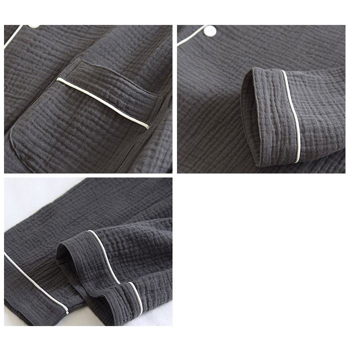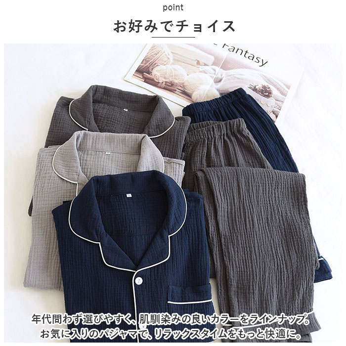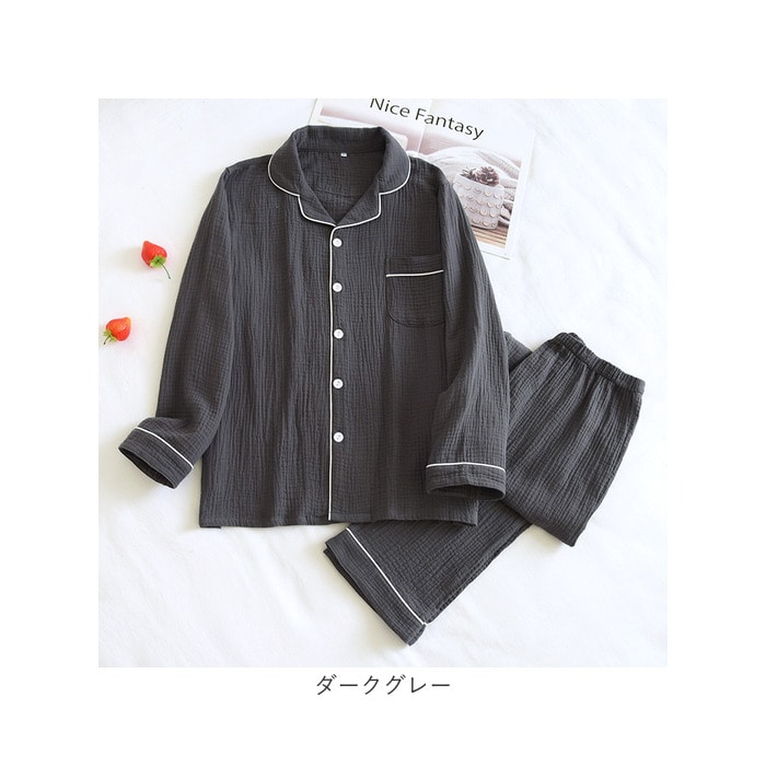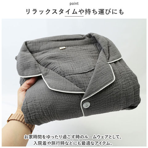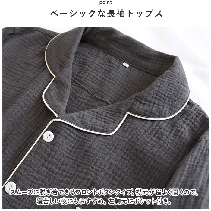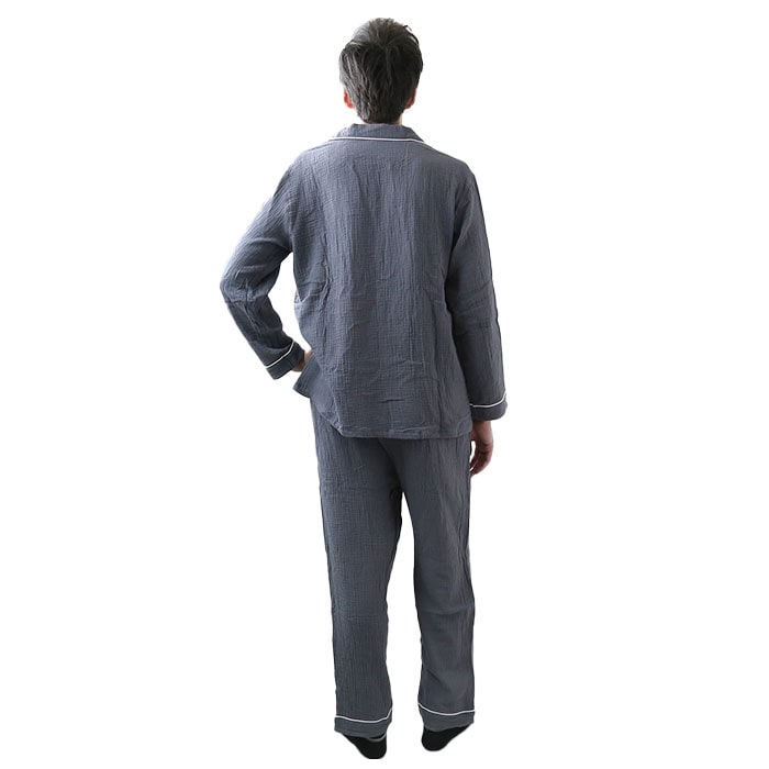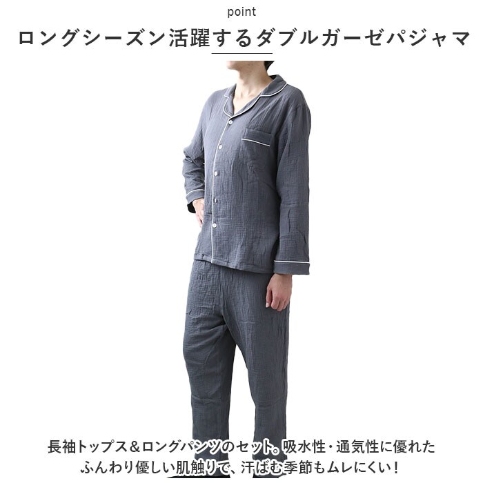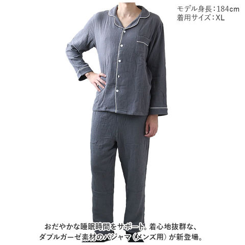 | 商品説明 | おだやかな睡眠時間をサポート。着心地抜群な、ダブルガーゼ素材のパジャマ(メンズ用)が新登場。【ロングシーズン活躍するダブルガーゼパジャマ】長袖トップス&ロングパンツのセット。吸水性・通気性に優れたふんわり優しい肌触りで、汗ばむ季節もムレにくい!【ベーシックな長袖トップス】スムーズに脱ぎ着できるフロントボタンタイプ。襟元が程よく開くので、寝苦しい夜にもおすすめ。左胸元にポケット付き。【ストレスなく履けるロングパンツ】締めつけ感のないウエストゴム仕様で、サッと着替えOK!冷房による冷え対策にもぴったりなロング丈。【リラックスタイムや持ち運びにも】お家時間をゆったり過ごす時のルームウェアとして。入院着や旅行時などにも最適なアイテム。【お好みでチョイス】年代問わず選びやすく、肌馴染みの良いカラーをラインナップ。お気に入りのパジャマで、リラックスタイムをもっと快適に。 |