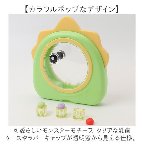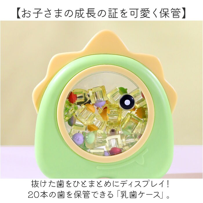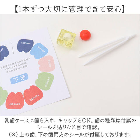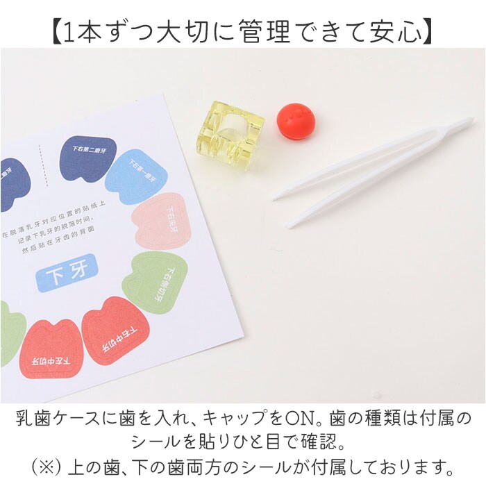 | 商品説明 | 【お子さまの成長の証を可愛く保管】抜けた歯をひとまとめにディスプレイ!20本の歯を保管できる「乳歯ケース」。【カラフルポップなデザイン】可愛らしいモンスターモチーフ。クリアな乳歯ケースやラバーキャップが透明窓から見える仕様。【1本ずつ大切に管理できて安心】乳歯ケースに歯を入れ、キャップをON。歯の種類は付属のシールを貼りひと目で確認。(※)上の歯、下の歯両方のシールが付属しております。【作業がラクになるアイテム付き】乳歯の固定や深さ調整に便利な脱脂綿、歯を掴むピンセットが付属。【幸せに育つように願いを込めて】産毛を入れておけるミニボトルと、願いを書き込めるウィッシングペーパー。乳歯と一緒に保管。【生まれた日の記録を一緒に】名前や誕生日など、お子さまのプロフィールを書き込めるシート付き。 |