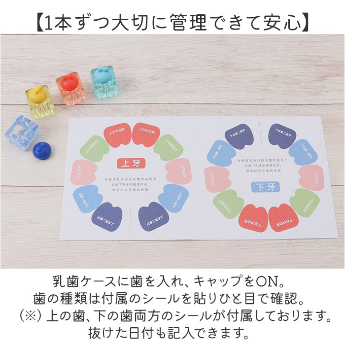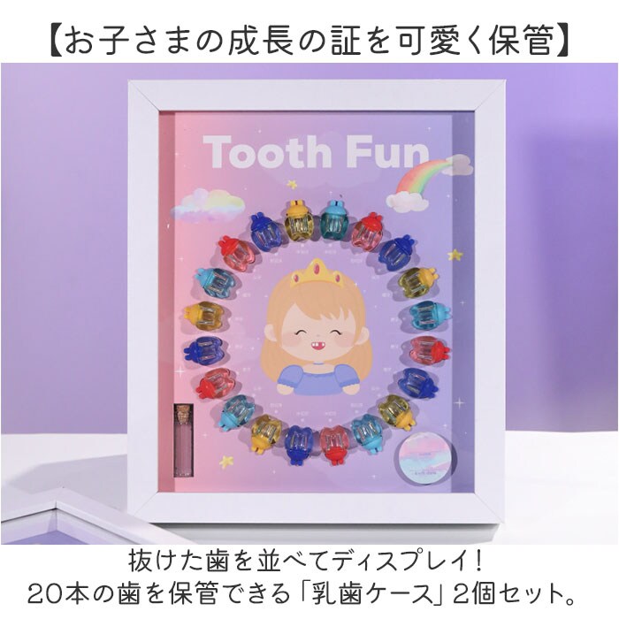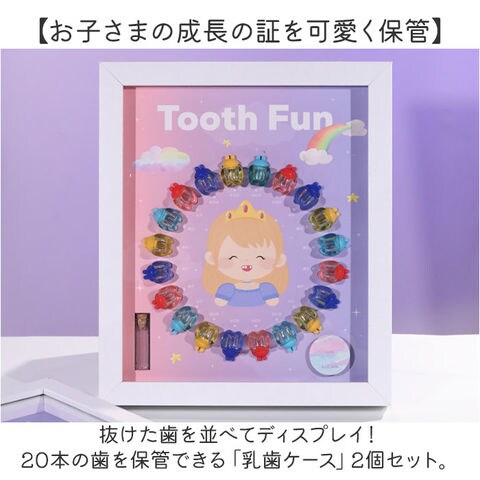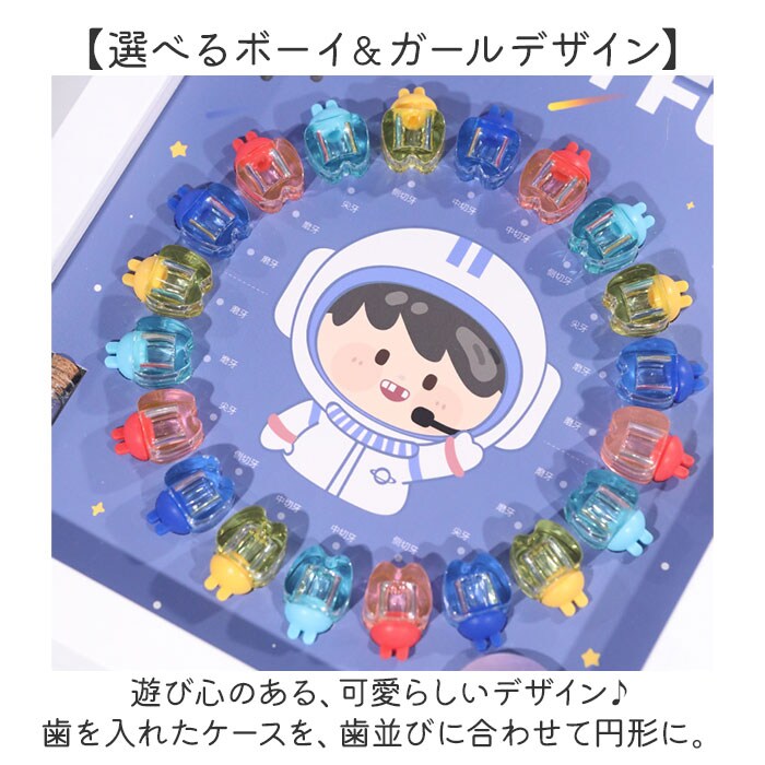| 商品説明 | 【お子さまの成長の証を可愛く保管】抜けた歯を並べてディスプレイ!20本の歯を保管できる「乳歯ケース」2個セット。【1本ずつ大切に管理できて安心】乳歯ケースに歯を入れ、キャップをON。歯の種類は付属のシールを貼りひと目で確認。(※)上の歯、下の歯両方のシールが付属しております。抜けた日付も記入できます。【選べるボーイ&ガールデザイン】遊び心のある、可愛らしいデザイン♪歯を入れたケースを、歯並びに合わせて円形に。【作業がラクになるアイテム付き】乳歯の固定や深さ調整に便利な脱脂綿、歯を掴むピンセットが付属。【幸せに育つように願いを込めて】産毛を入れておけるミニボトルと、願いを書き込めるウィッシングペーパー。乳歯と一緒に保管。【出生記録をさりげなくプラス】お名前と誕生日を記載できるミニカード付き。付属の両面テープを使って貼り付け。【立てかけも壁掛けもできる2way】背面のスタンドを使って飾っても良し、フックを使って壁掛けも。お好きな飾り方をチョイス。【兄弟・姉妹で使える2個セット】お子さま1人1人の成長を、しっかり管理◎双子ちゃんにもおすすめ! |