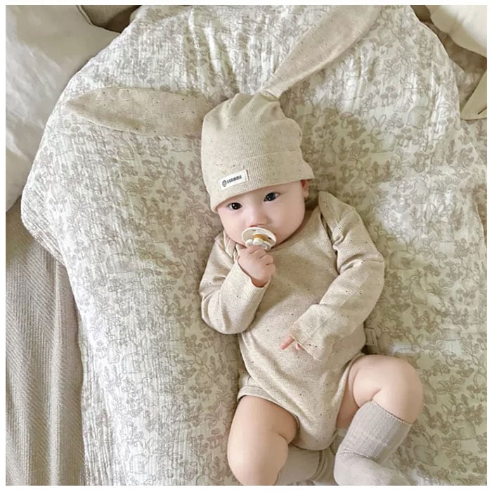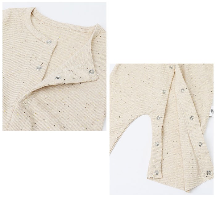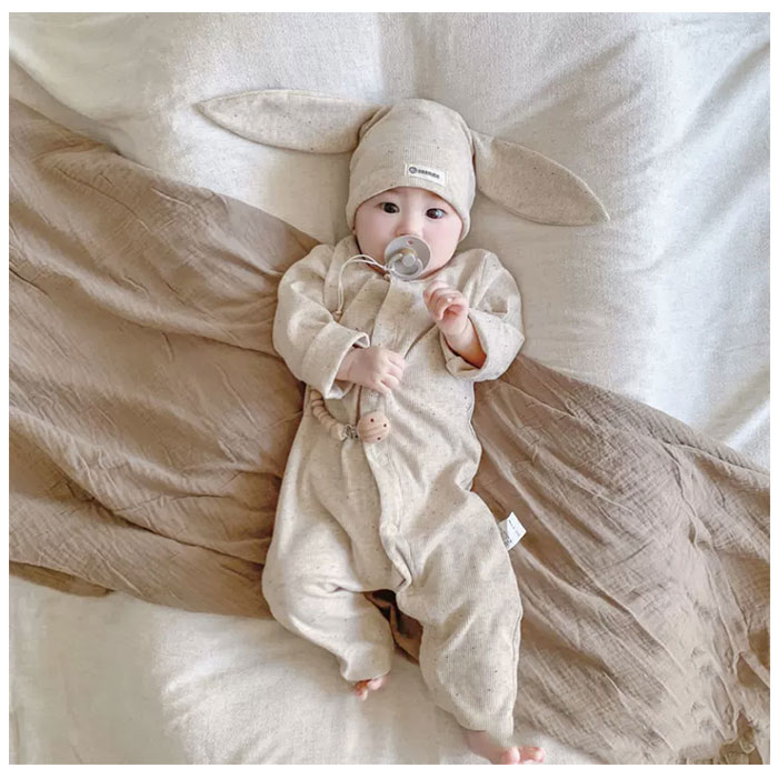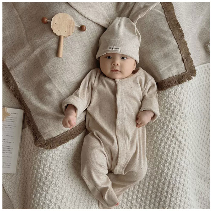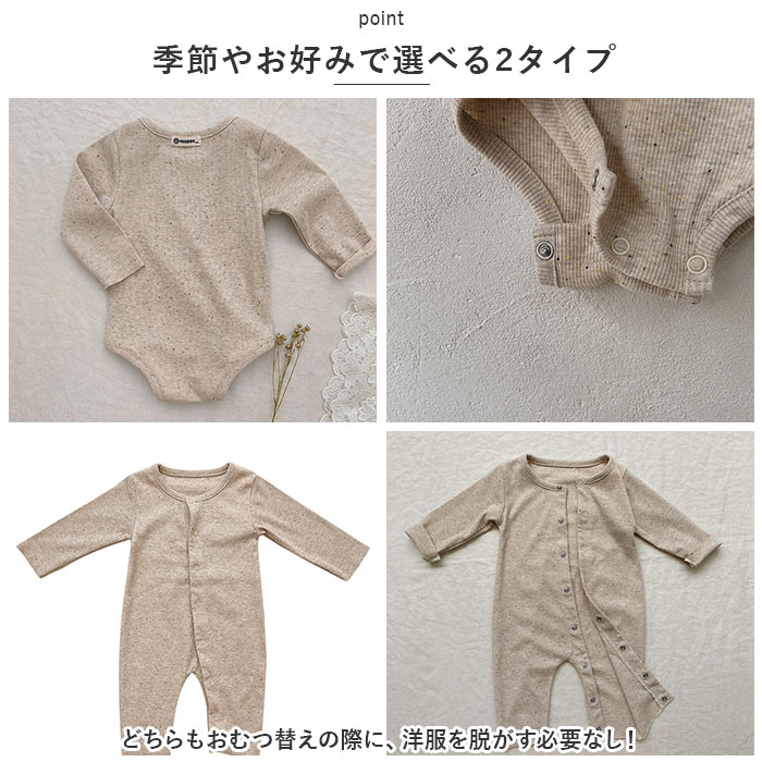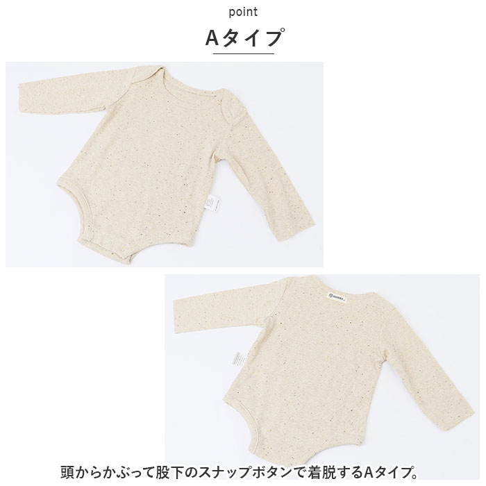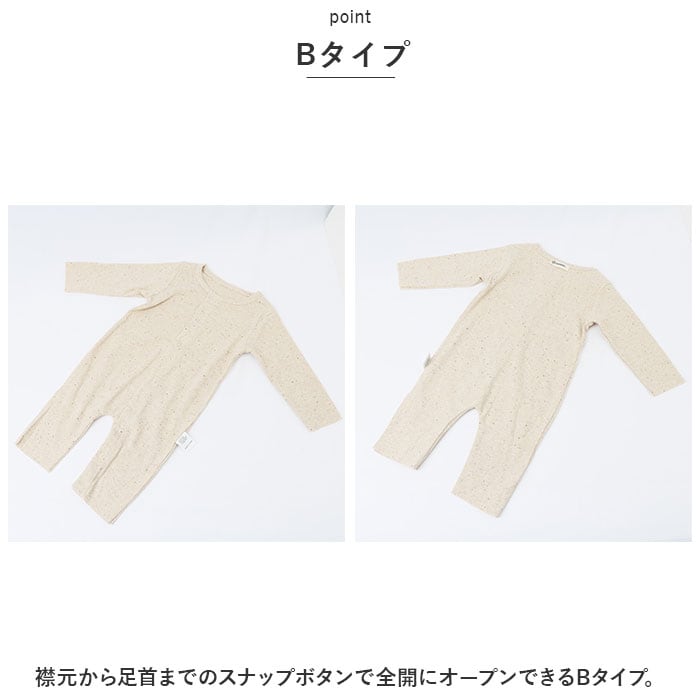 | 商品説明 | ナチュラル可愛い♪長袖タイプのベビーロンパースが登場。【シンプルなデザイン】男の子も女の子も着用しやすいユニセックス仕様。装飾などがなく、落ち着きのある仕上がりに。【柔らかく優しい肌触り】デリケートな肌に触れても安心!柔らかなコットン混紡素材を使用。程よいストレッチ性もあり、ベビーの動きを妨げることなくストレスフリー◎【季節やお好みで選べる2タイプ】頭からかぶって股下のスナップボタンで着脱するAタイプ。襟元から足首までのスナップボタンで全開にオープンできるBタイプ。どちらもおむつ替えの際に、洋服を脱がす必要なし!(※タイプによりフォルムや丈感が異なります。)【キュートな帽子付き】ロンパースとセット使いも単体でも使用OK。耳付きで可愛らしさ満点☆【それぞれ4サイズをラインナップ】ベビーの成長に合わせて選べる、4サイズ展開。兄弟・姉妹でお揃いコーデもおすすめ。 |